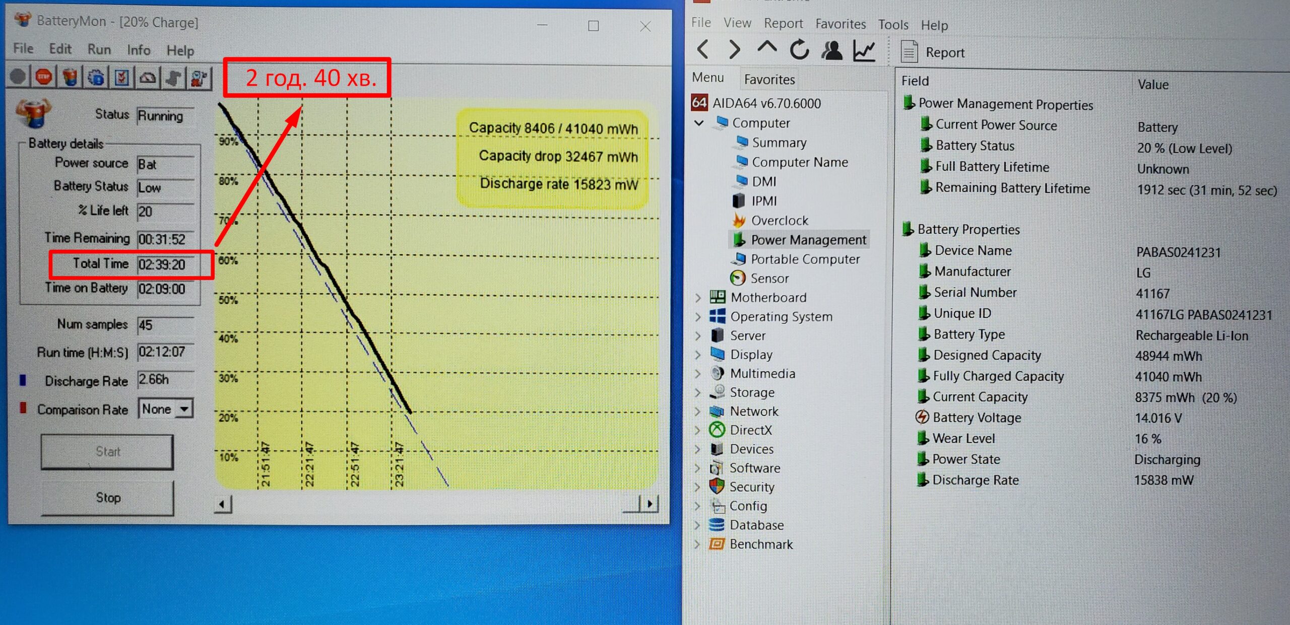 Час роботи від батареї близько 3 годин в режимі перегляду фільмів (див. фото).