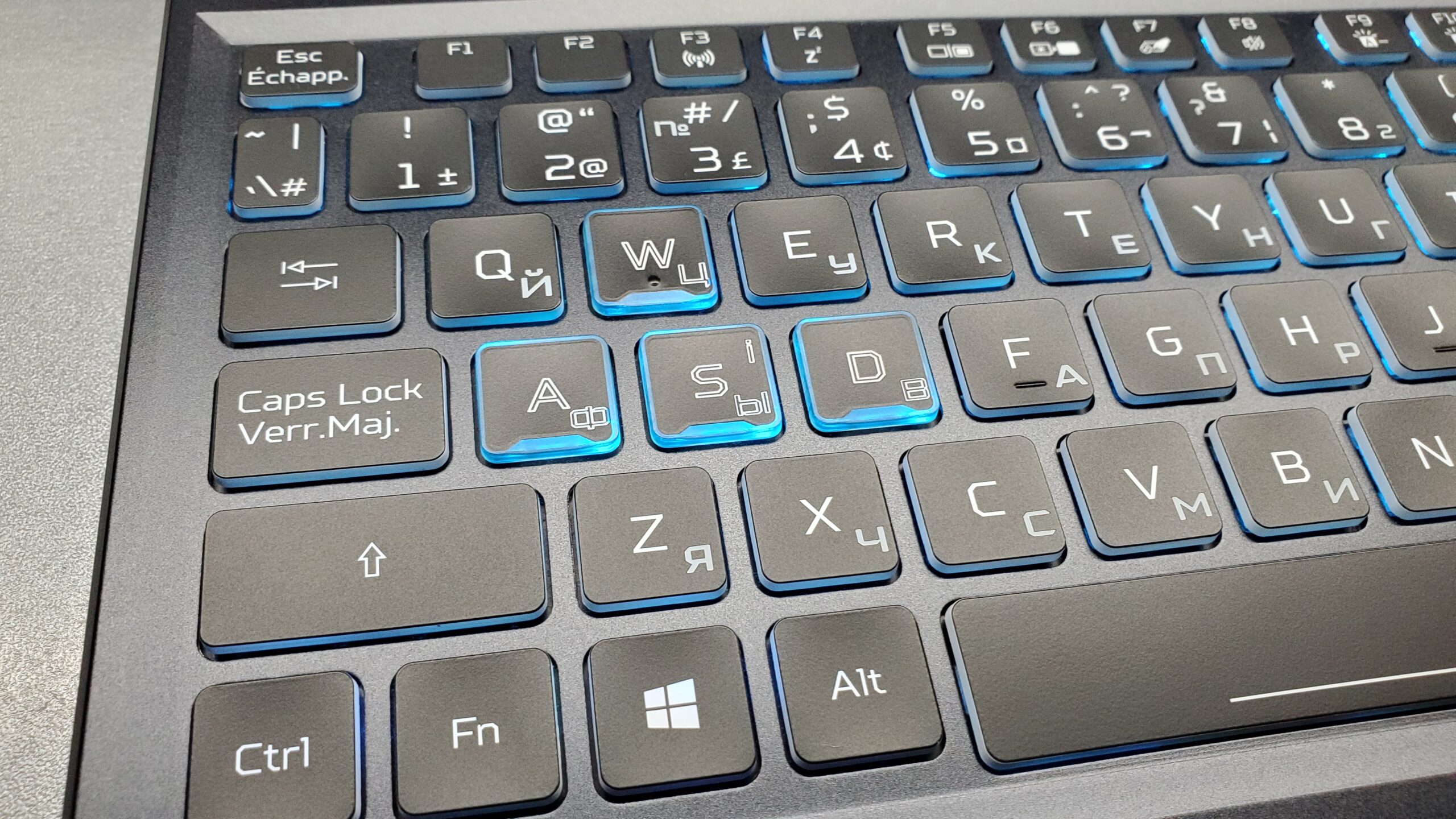 Клавіатура має українські та російські літери та синє програмоване підсвічування.
