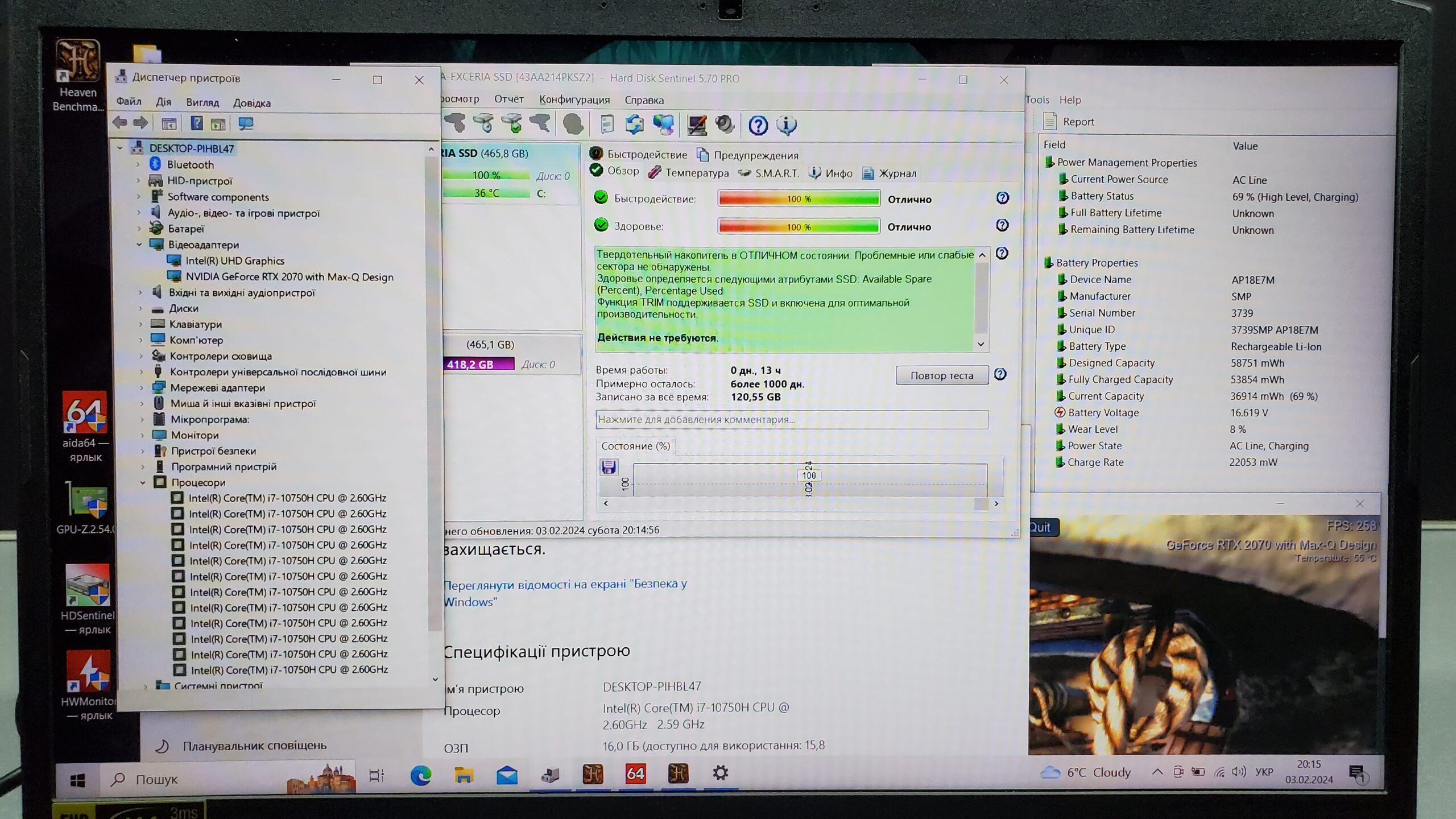 • Відеокарта: nVidia GeForce RTX 2070 Max-Q 8Gb GDDR6 (потужна)