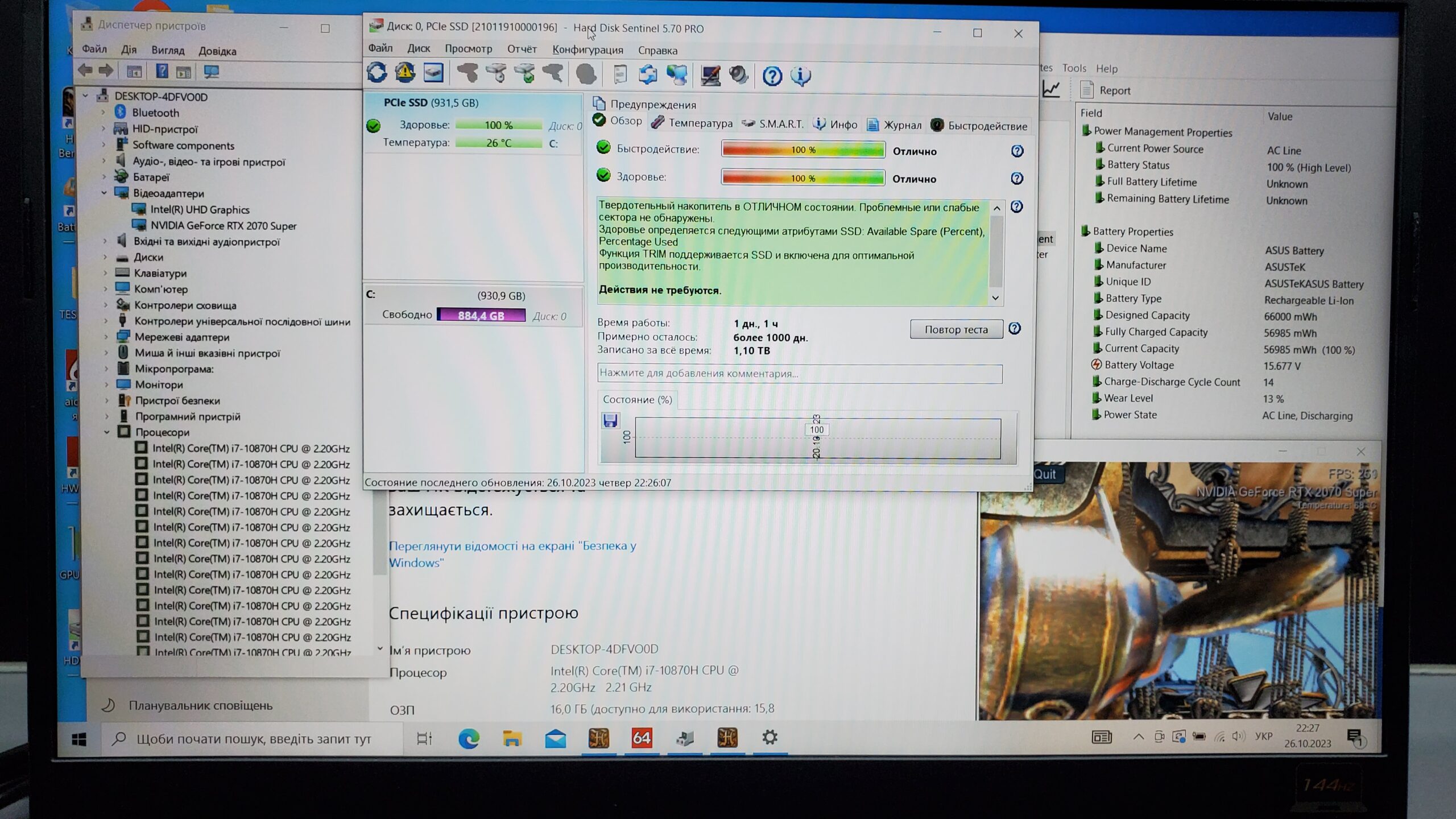 В продажу дуууууууже швидкий (я б сказав навіть блискавичний) сучасний ігровий ноутбук Asus ROG Strix G512LW-WS74 в гарному стані на повноцінному надпотужному процесорі Intel Core i7-10870H.
