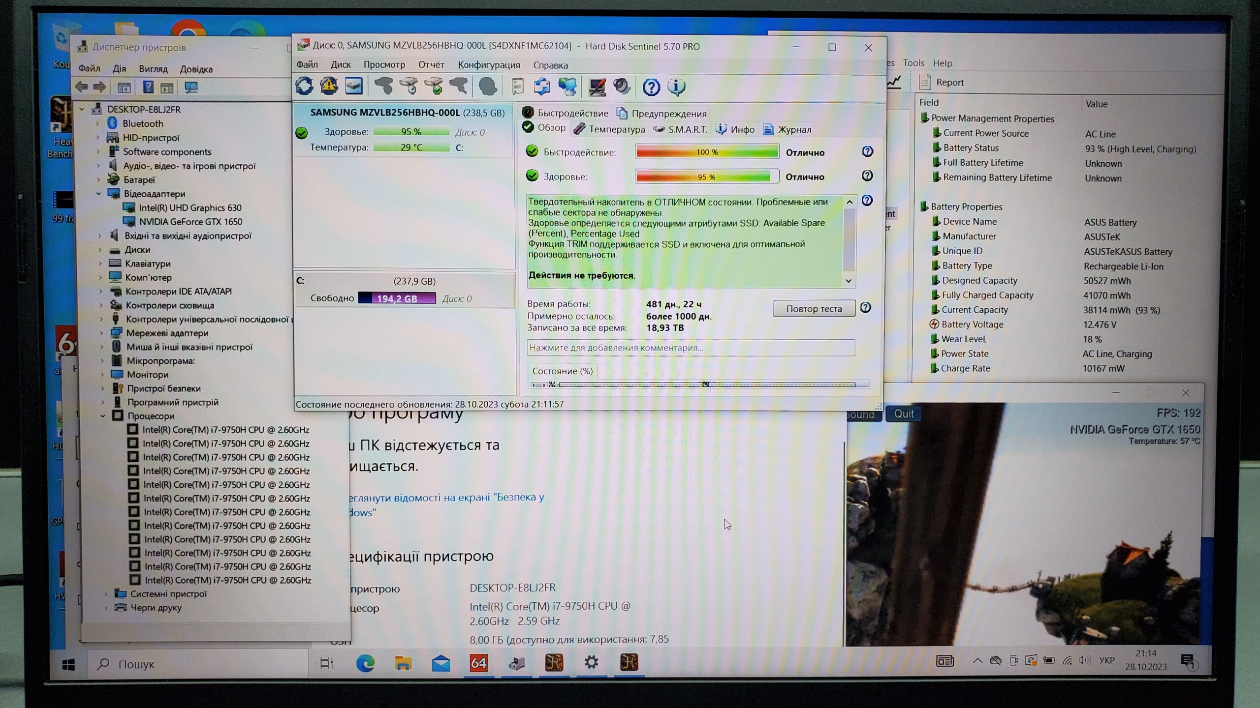 Швидка ігрова машина з відеокартою базового рівня nVidia GeForce GTX 1650 з 128-бітною! шиною та 4Гб відеопам’яті GDDR5, але на повноцінному швидкому процесорі Intel Core i7-9750H.