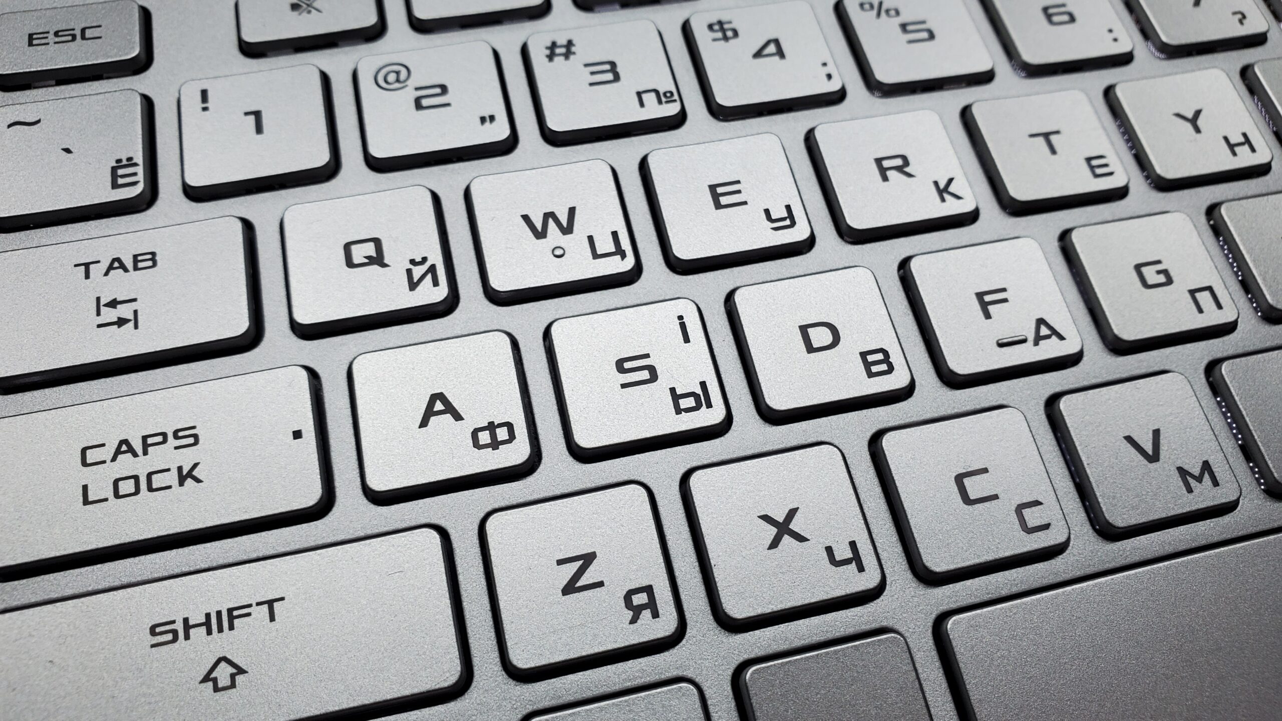 Клавіатура має українські та російські літери та підсвічування білого кольору.
