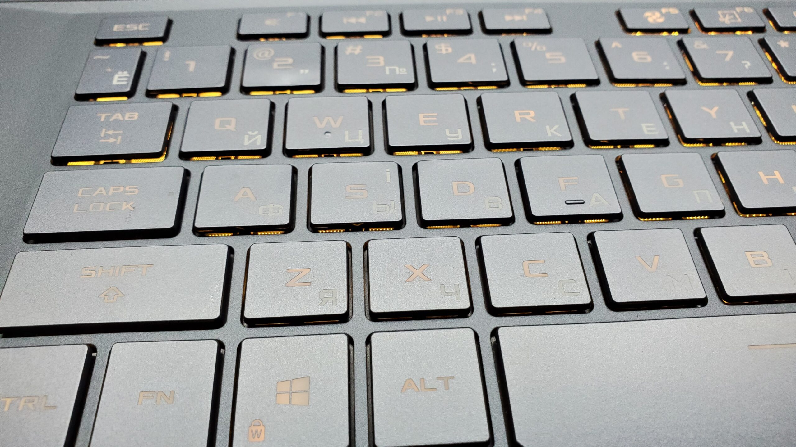 Клавіатура має українські та російські літери та різнокольорове програмоване підсвічування.