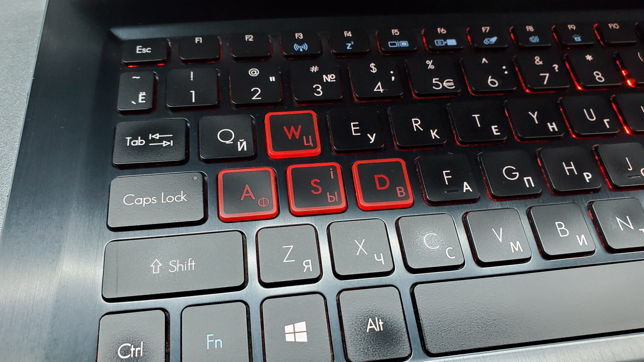 Клавиатура имеет украинские и русские буквы и красную подсветку.