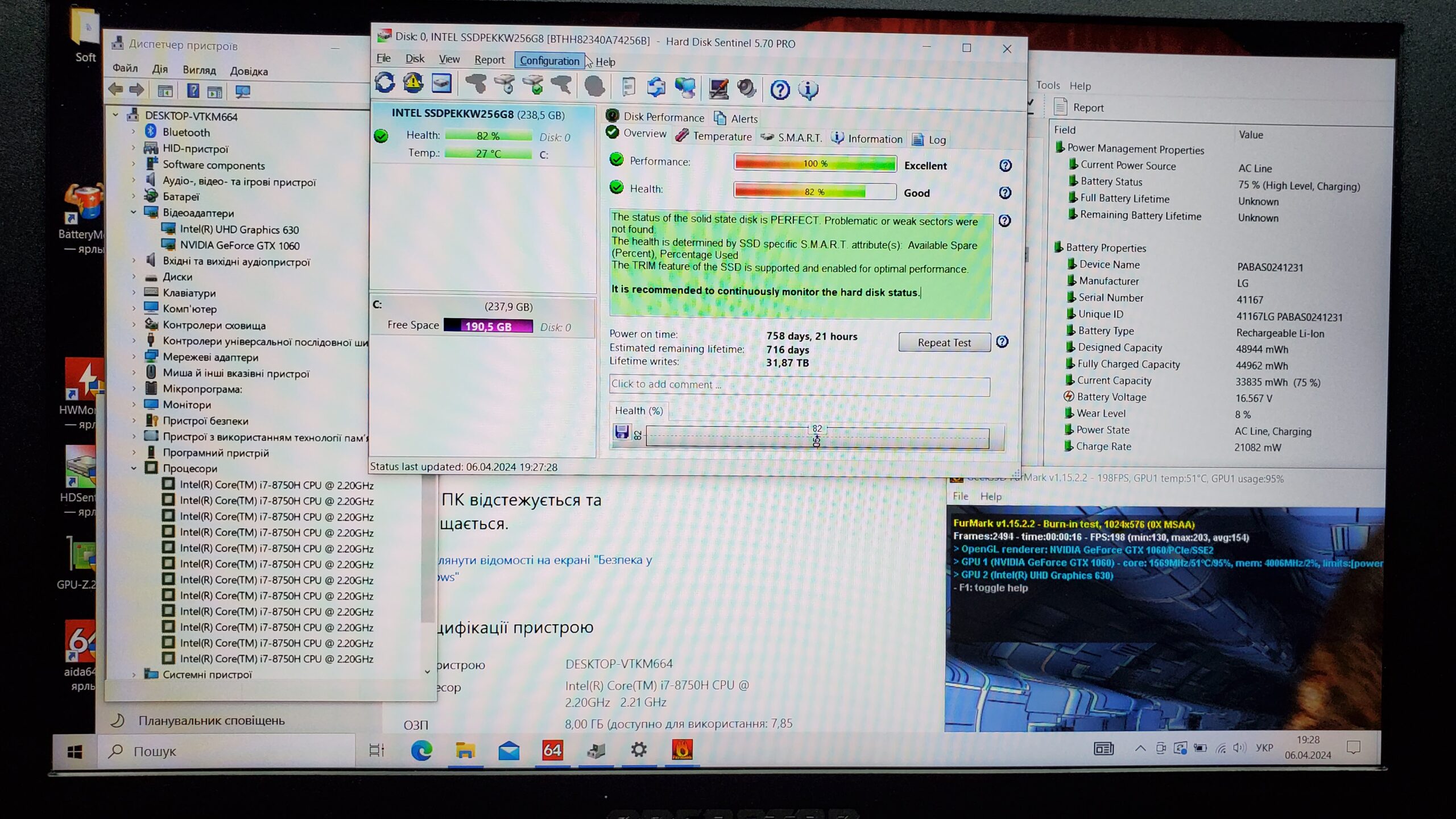 Характеристики еще достаточно мощные (особенно по сравнению с любыми интегрированными энергосберегающими решениями), включая дискретную (отдельную) видеокарту nVidia GeForce GTX 1060 с 192-битной шиной и 6Гб видеопамяти GDDR6.