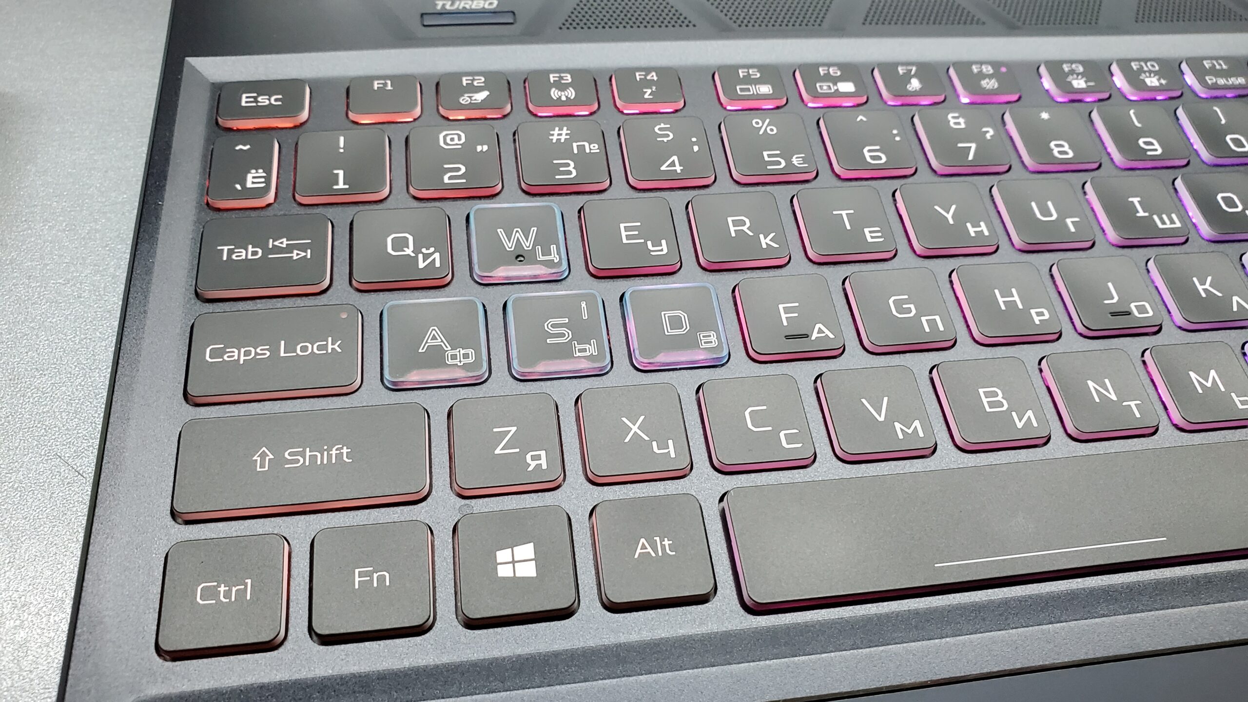 Клавиатура имеет украинские и русские буквы и разноцветную программируемую подсветку.