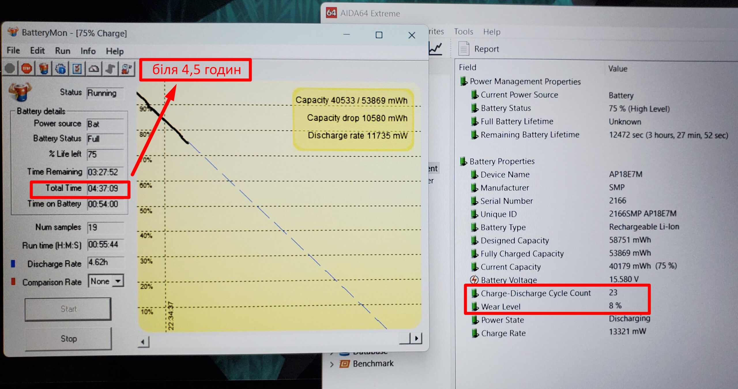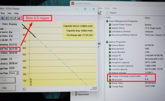 Время работы от батареи около 4 часов в режиме просмотра фильмов (фото будет).