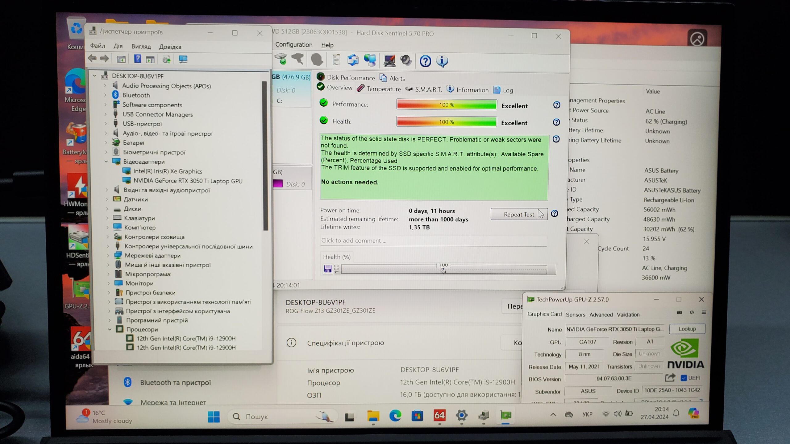 В продаже современная модель ноутбука-суперпланшета ASUS ROG специфической серии ROG Flow GZ301Z в отличном состоянии почти без следов использования, на супермощном полноценном ТОПовом процессоре Intel Core i9-12900H со временем работы от аккумулятора более 4 часов в режиме просмотра фильма.
