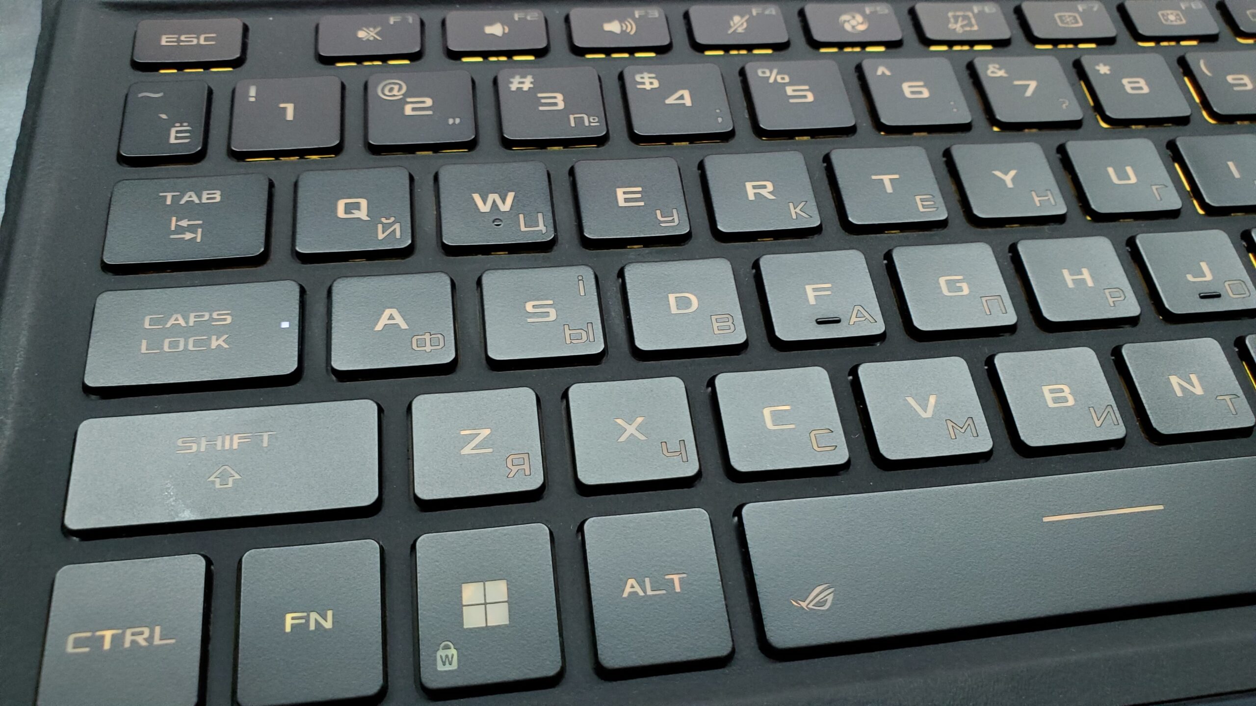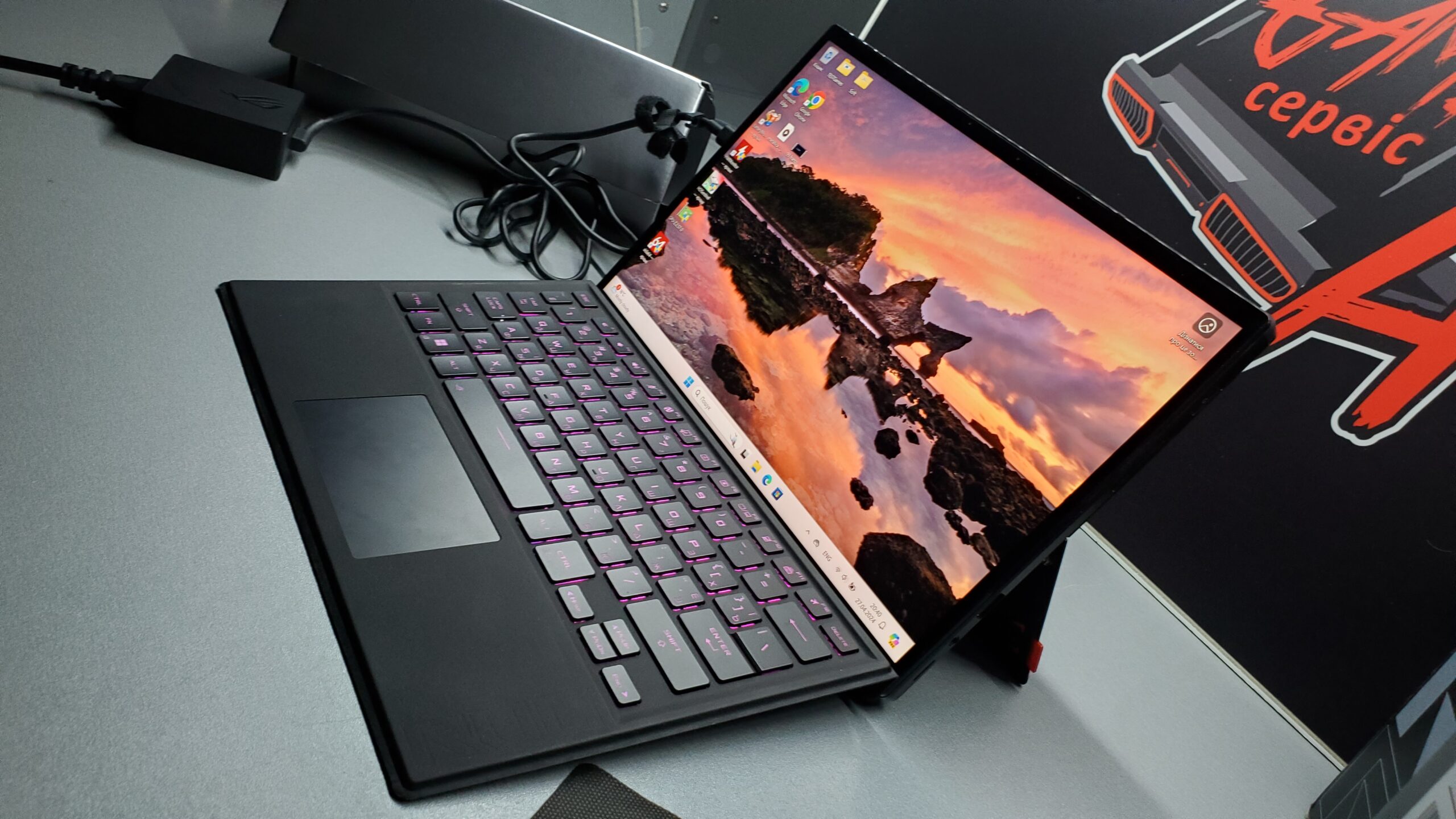 Отсоединяемая клавиатура имеет украинские и русские буквы и разноцветную программируемую подсветку.