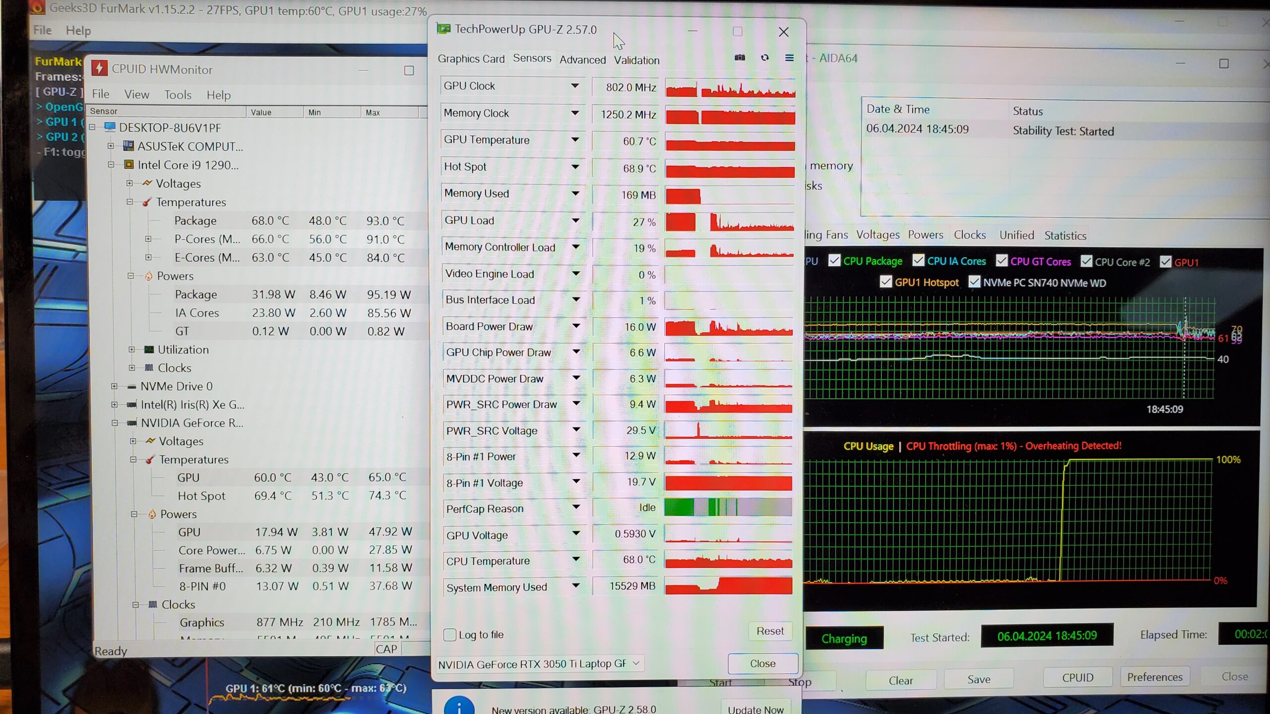 Развитые характеристики, включая видеокарту среднего уровня nVidia GeForce RTX 3050Ti со 128-битной шиной и 4Гб видеопамяти GDDR6.