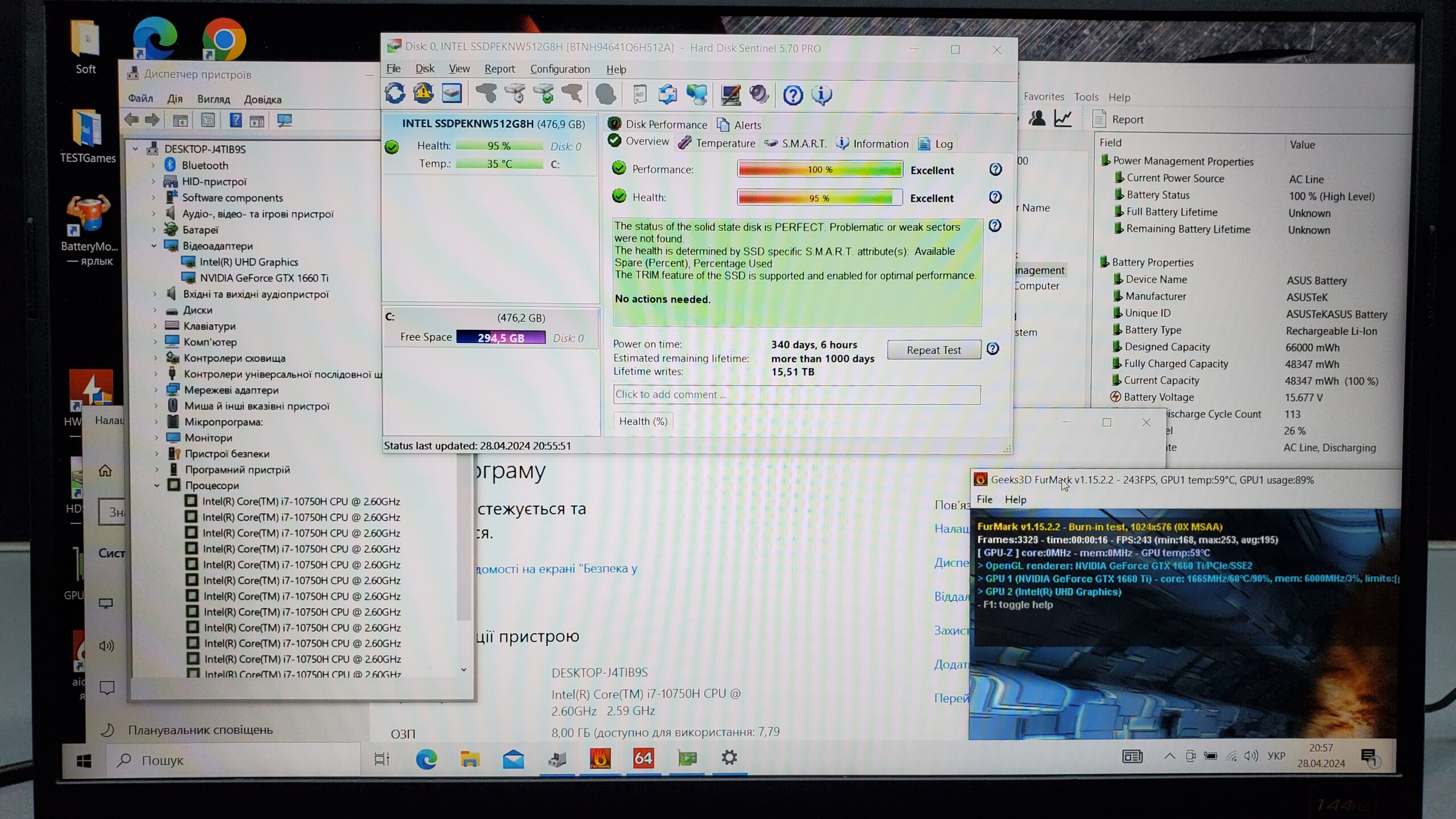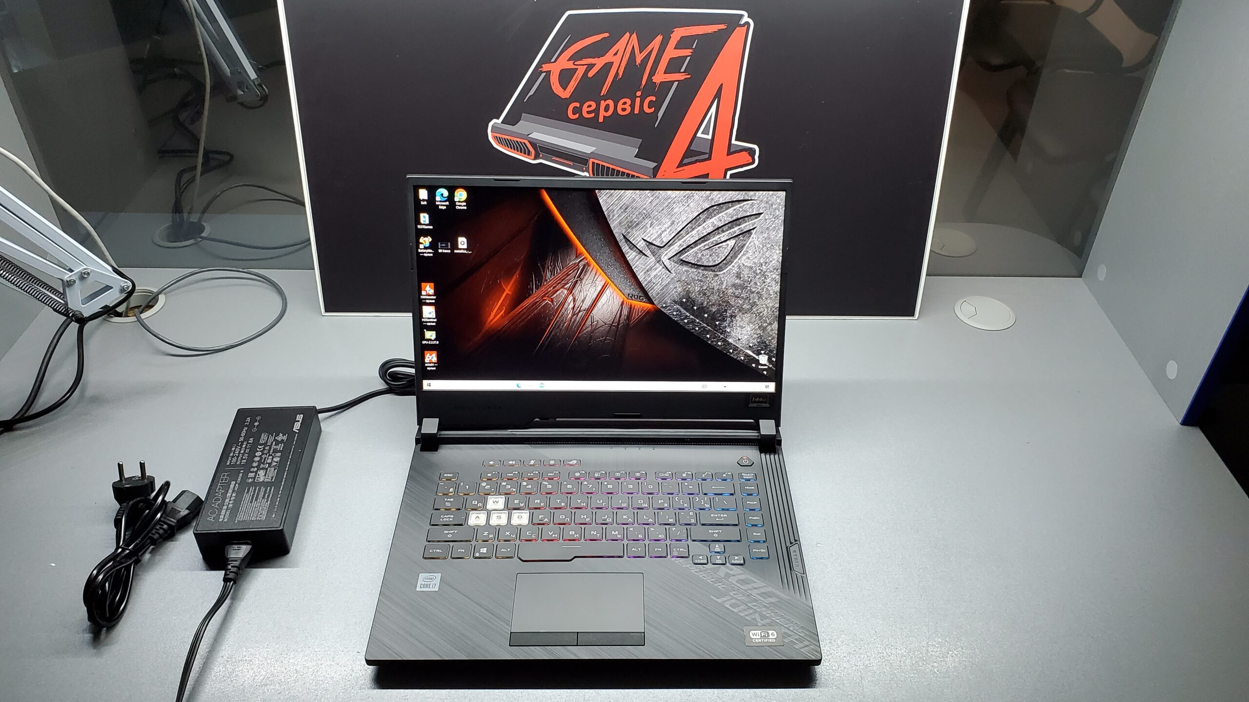 В продаже ноутбук от Asus из игровой линейки ROG Strix G512LU в нормальном состоянии с небольшими следами использования (царапины на крышке), на полноценном мощном процессоре Intel Core i7-10750H.