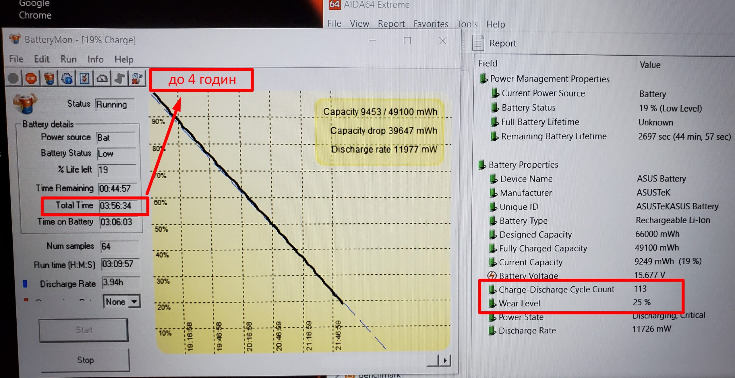 Время работы от батареи до 4 часов в режиме просмотра фильмов (см. фото).