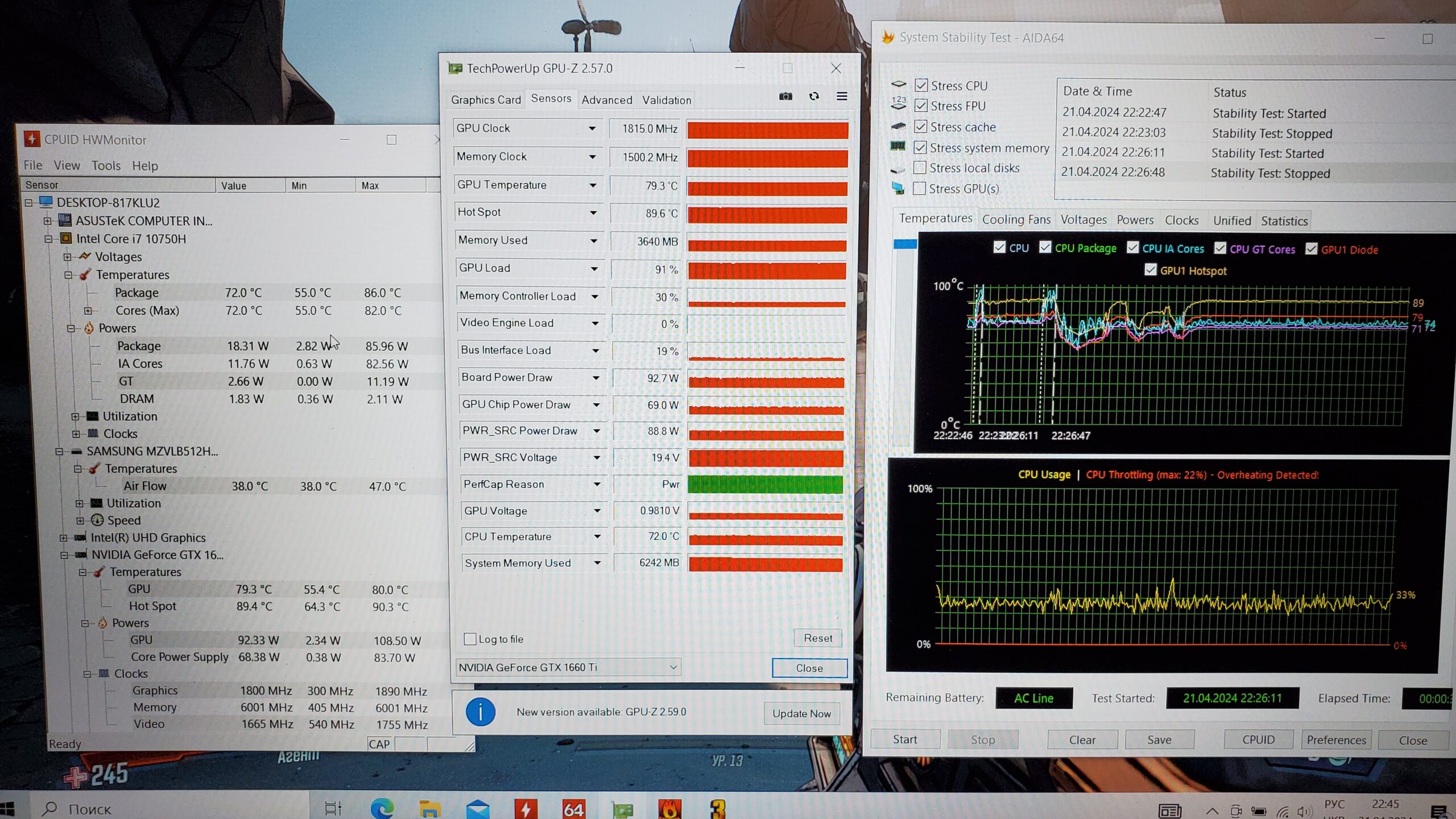 Актуальный игровой ноутбук Asus ROG Strix G512LU с мощным процессором i7 10 поколения и видеокартой GTX 1660Ti уверенного среднего уровня с 6Gb видеопамяти GDDR6