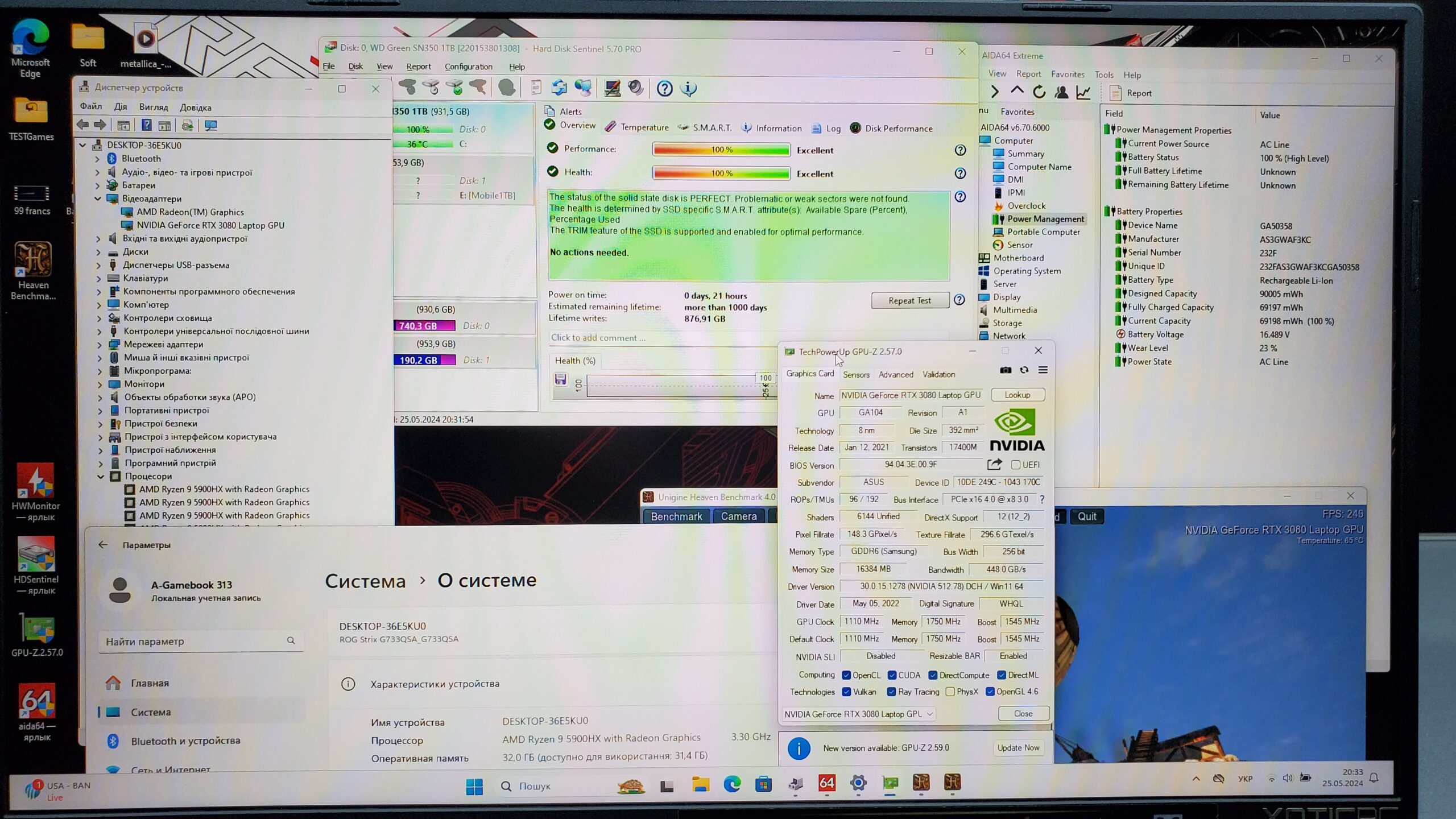 В продаже современная ТОПовая модель ноутбука Asus ROG Strix G733QSA в отличном состоянии почти без следов использования, на мощном полноценном ТОПовом процессоре AMD Ryzen 9 5900HX со временем работы от аккумулятора до 3 часов в режиме просмотра фильма (см. скриншот).