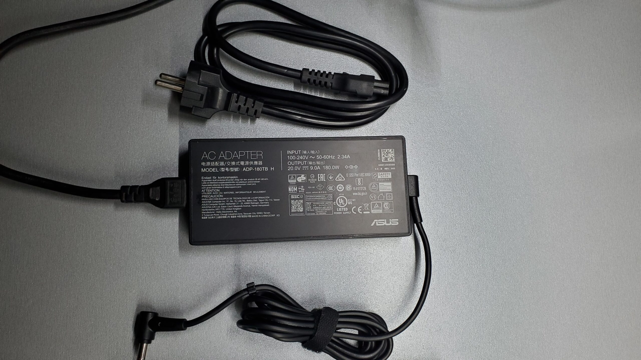 Полная: коробка, оригинальный блок питания 180Вт и кабель питания. |