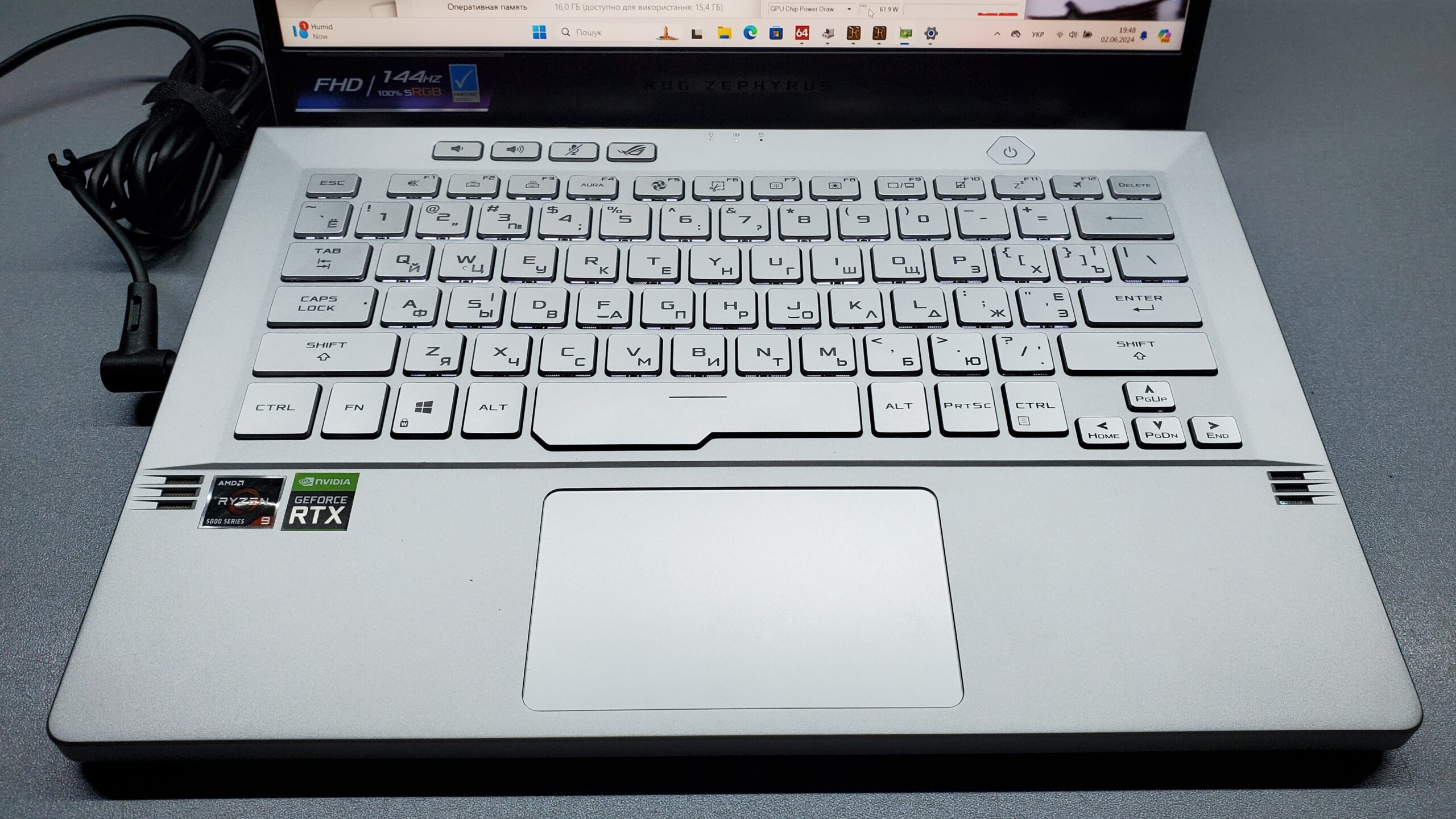 В продаже современный мощный, однако очень компактный ноутбук Asus из игровой линейки ROG Zephyrus в хорошем состоянии б/у, почти без следов использования, на ТОПовом полноценном процессоре AMD Ryzen 9 5900HS.