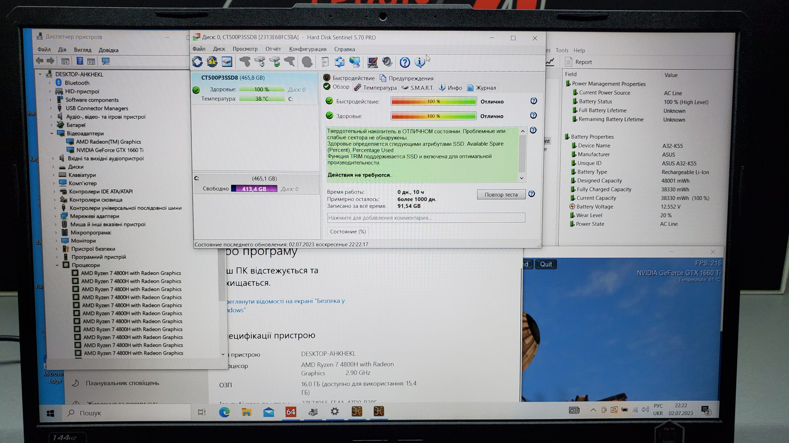 В продаже игровой ноутбук Asus в хорошем состоянии со следами использования (в основном на крышке матрицы, см. фото и видео), на полноценном процессоре AMD Ryzen 7 4800H.