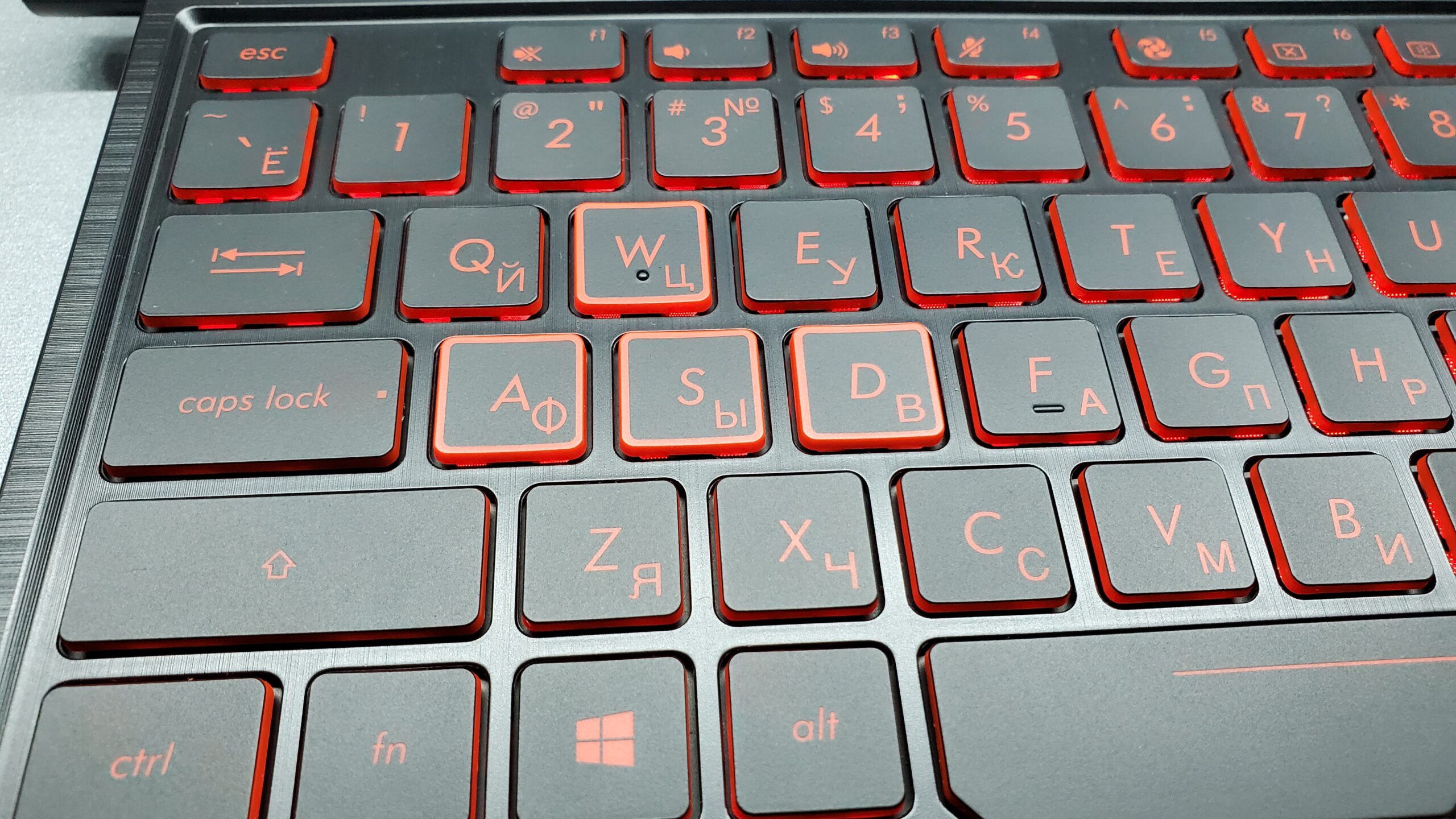 Клавиатура с украинскими и русскими буквами и красной подсветкой.