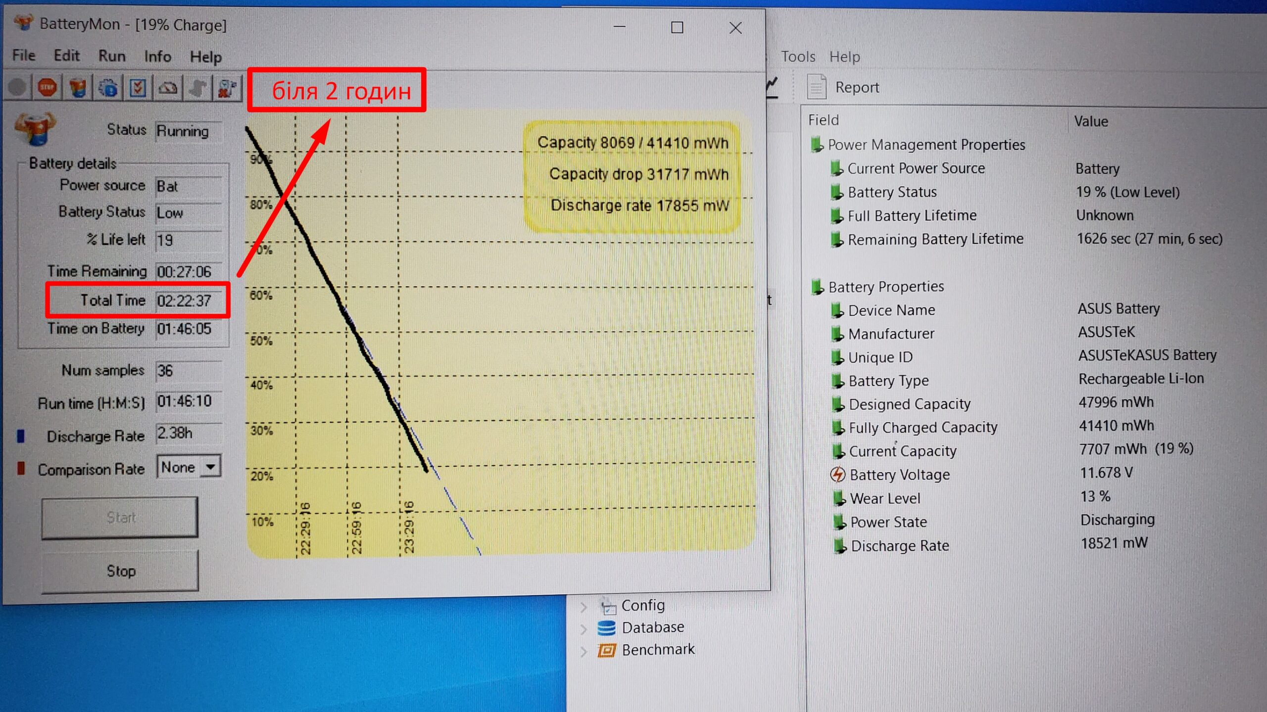 Время работы от батареи в режиме просмотра фильмов около 2 часов.