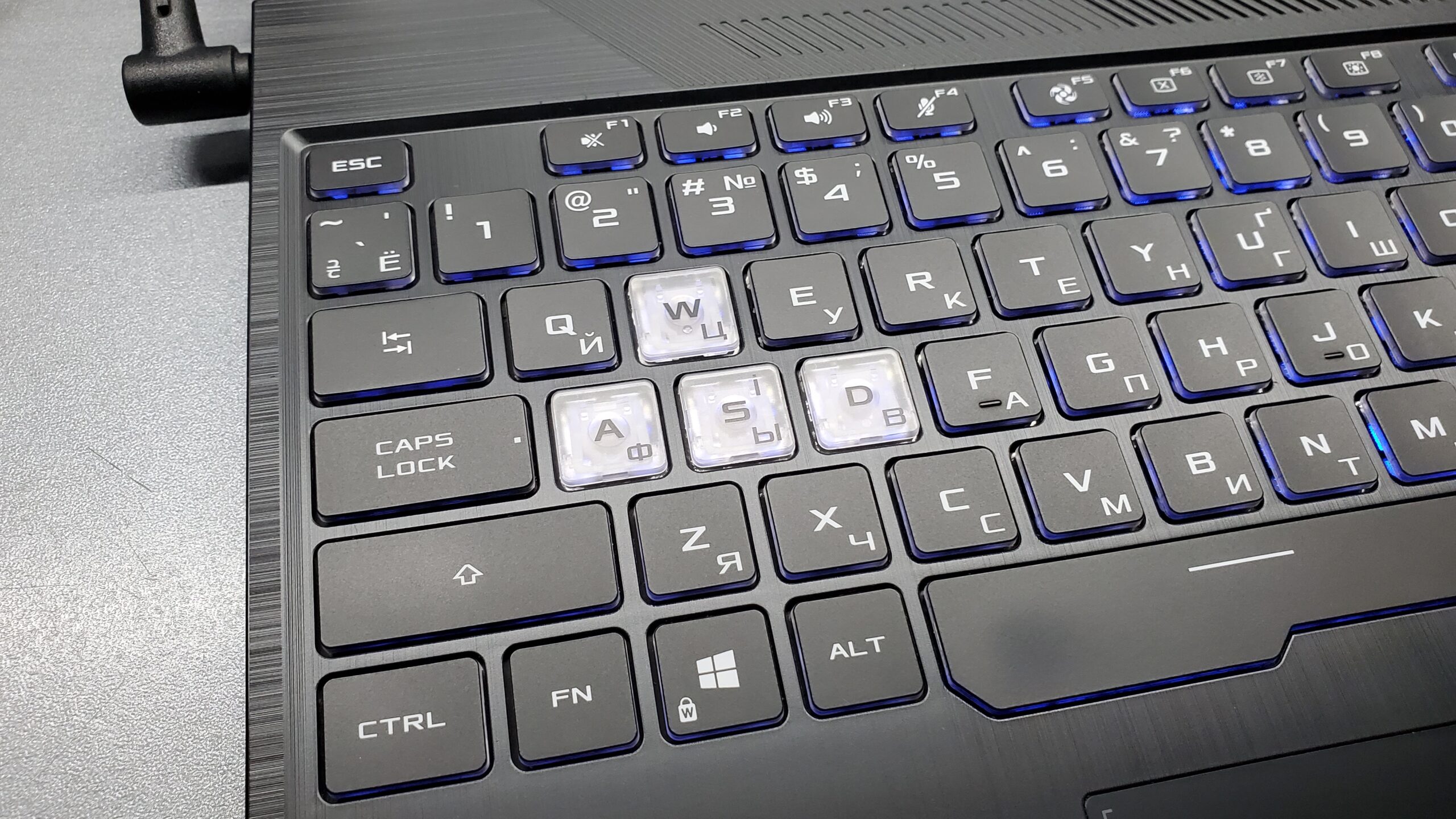 Клавиатура имеет украинские и русские буквы и разноцветную программируемую подсветку.