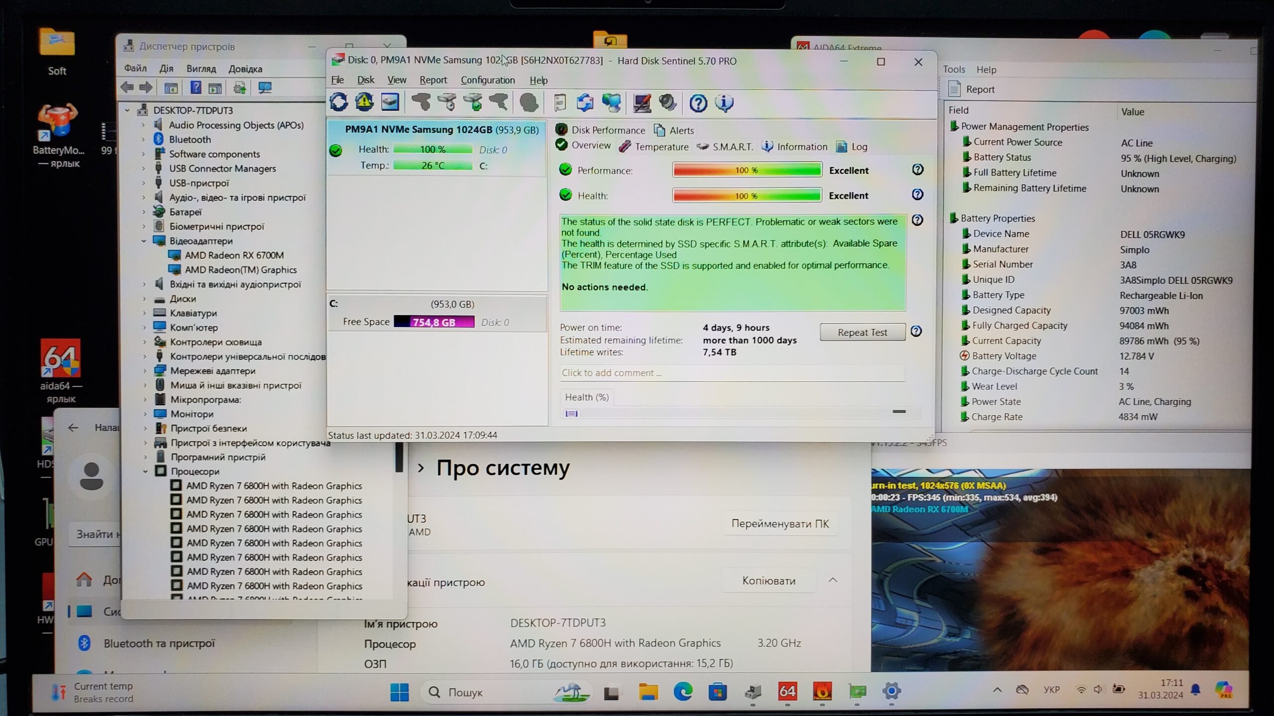 В продаже современная и мощная модель ноутбука Dell Alienware m17 R5 легендарной игровой серии в отличном состоянии, на мощном полноценном процессоре AMD Ryzen 7 6800H со временем работы от аккумулятора около 6 часов в режиме просмотра фильма (см. скриншот).