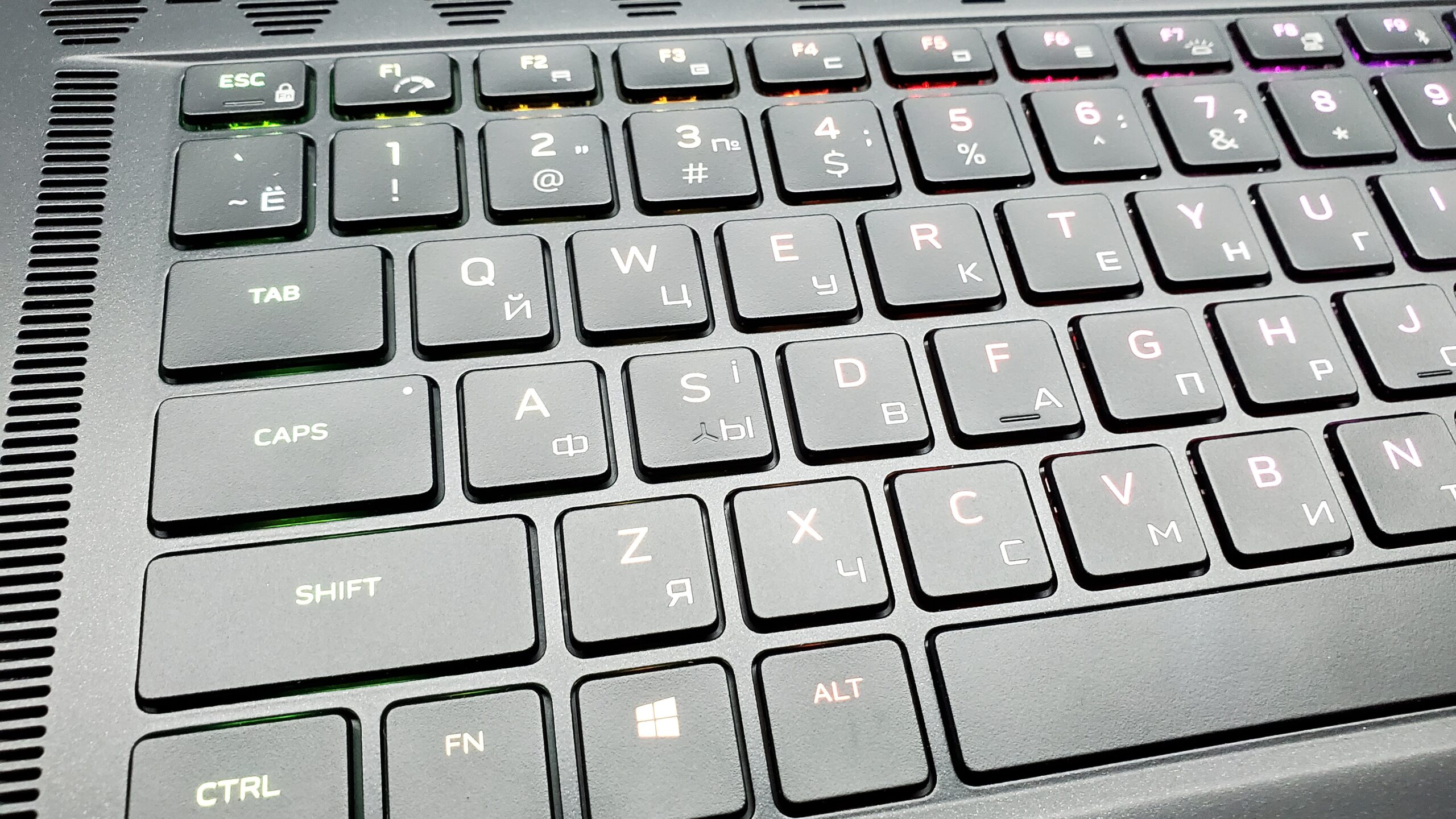Клавиатура имеет украинские и русские буквы и разноцветную программируемую подсветку.