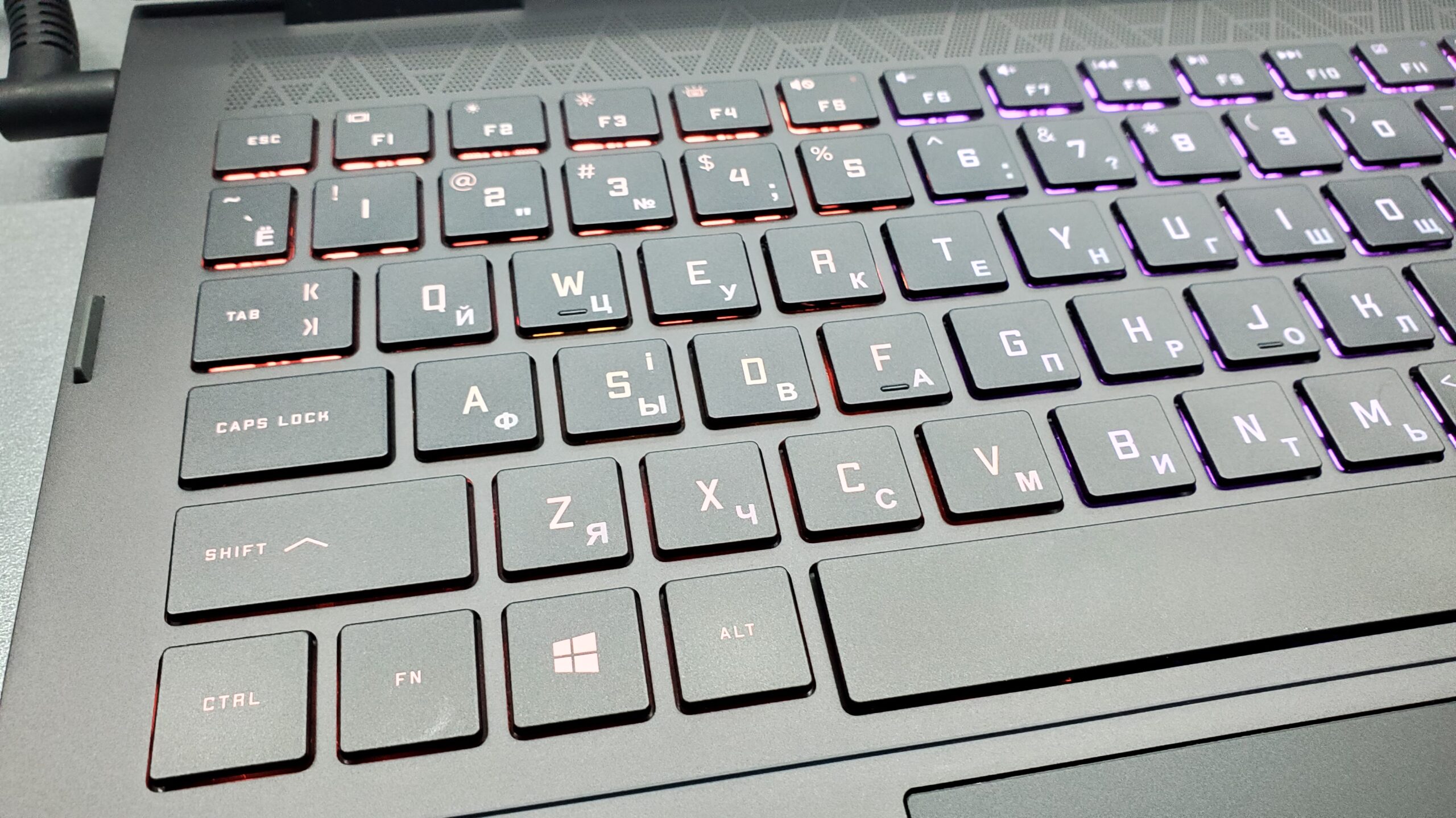 Клавиатура имеет украинские и русские буквы и разноцветную подсветку.