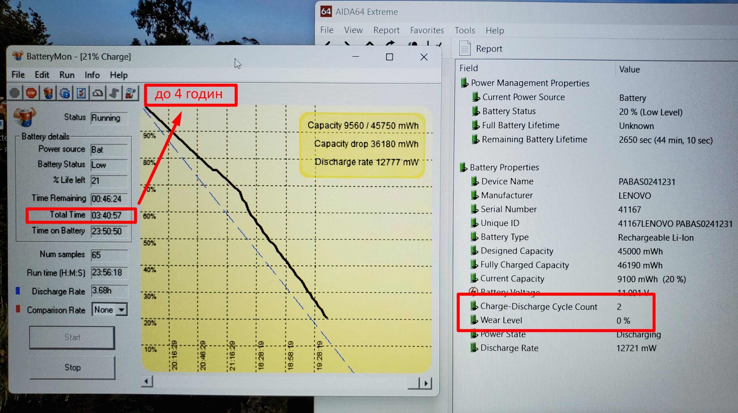 час роботи від батареї ноутбука Lenovo IdeaPad Gaming 3 15ARH7