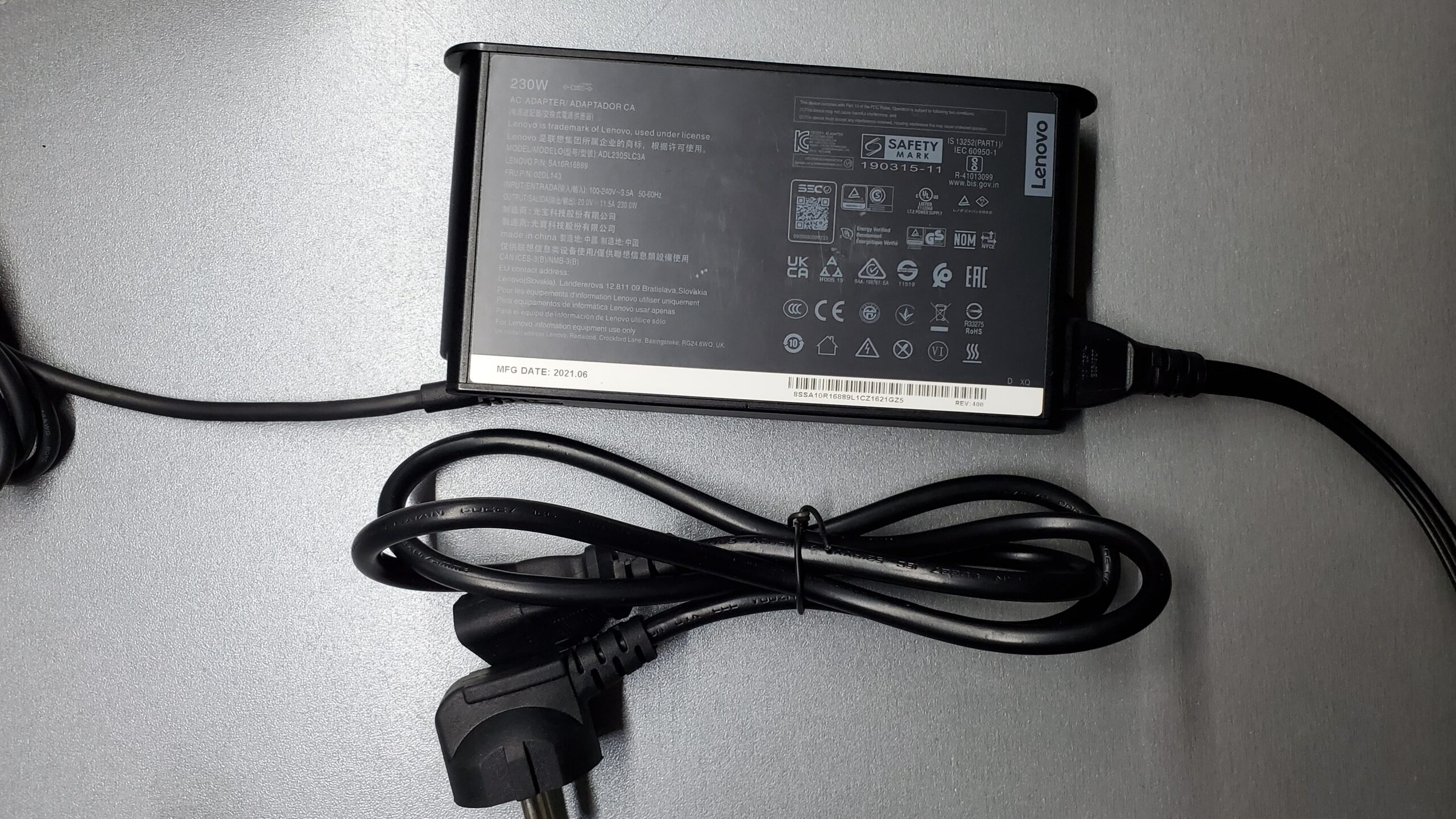 В комплекте с ноутбуком оригинальный адаптер питания 230Вт и кабель питания. |