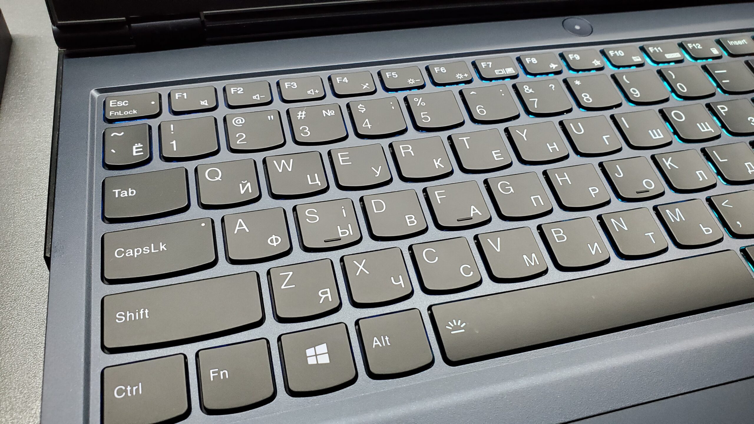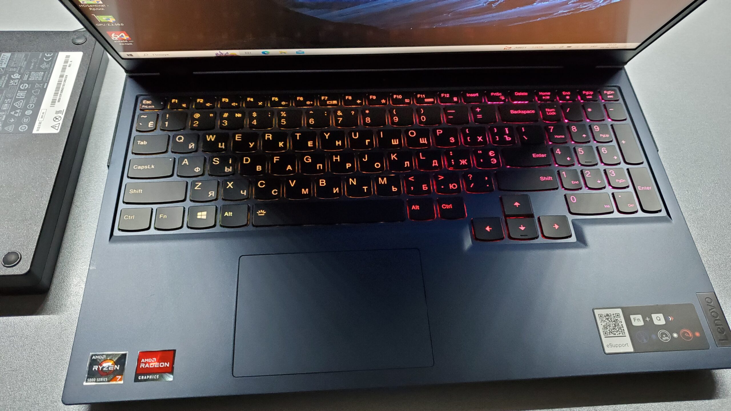 Клавиатура имеет украинские и русские буквы и очень разноцветную программируемую подсветку.