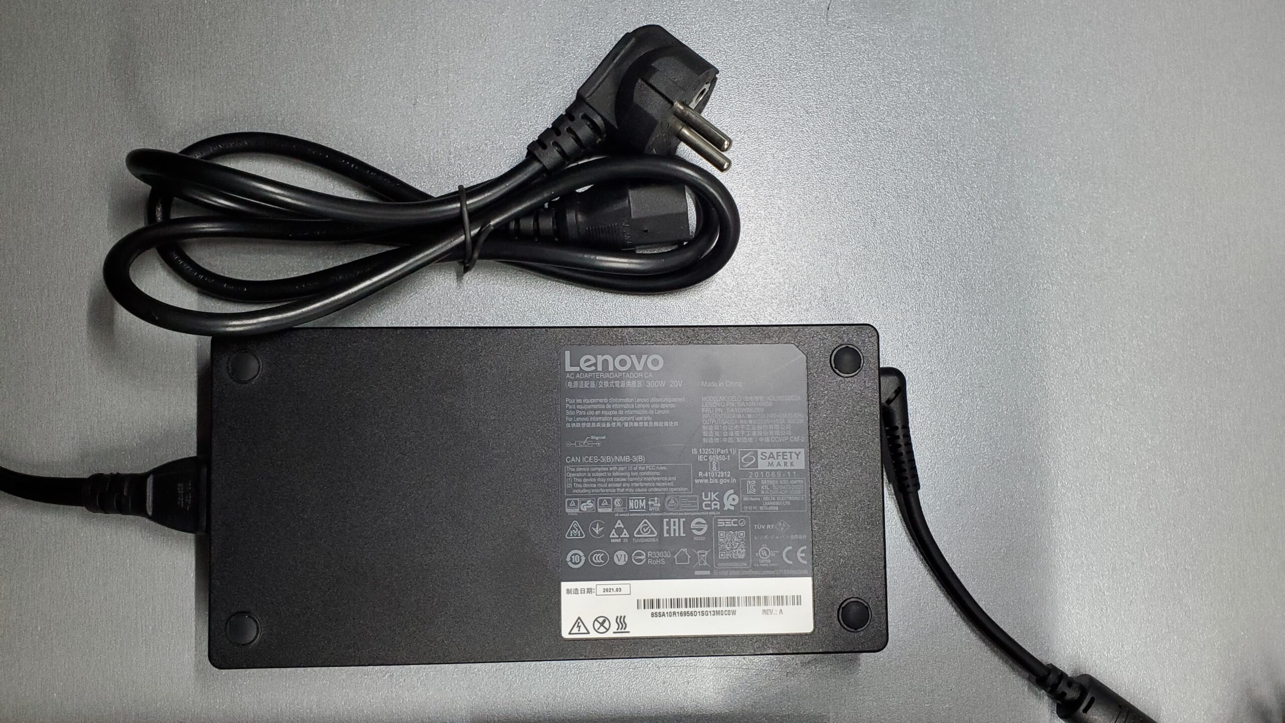 В комплекте с ноутбуком оригинальный блок питания 300Вт и кабель питания. |