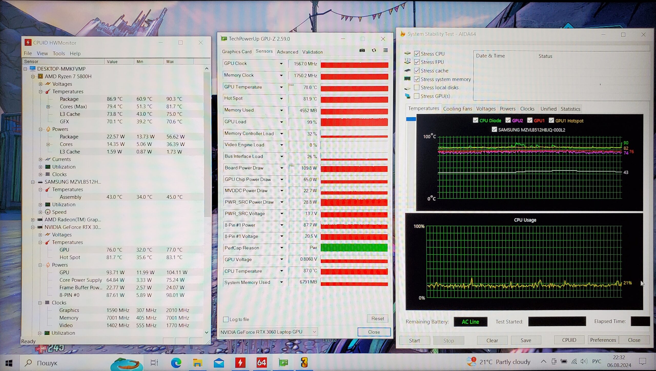 Современный игровой ноутбук Lenovo Legion 5 15ARH6H полноценным процессором AMD Ryzen 7 5го поколения и мощной видеокартой RTX 3060 с видеопамятью 6Gb GDDR6