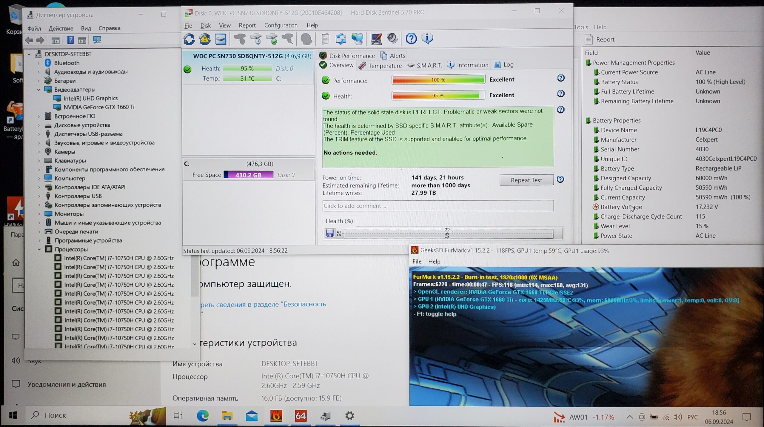 В продаже ноутбук от Lenovo серии Legion удачной конструкции с эффективной системой охлаждения в состоянии б/у, следы использования (потертости, царапины, трещины рамки), на полноценном мощном процессоре Intel Core i7-10750H со временем работы от аккумулятора до 7 часов в режиме просмотра фильма (см. скриншот).
