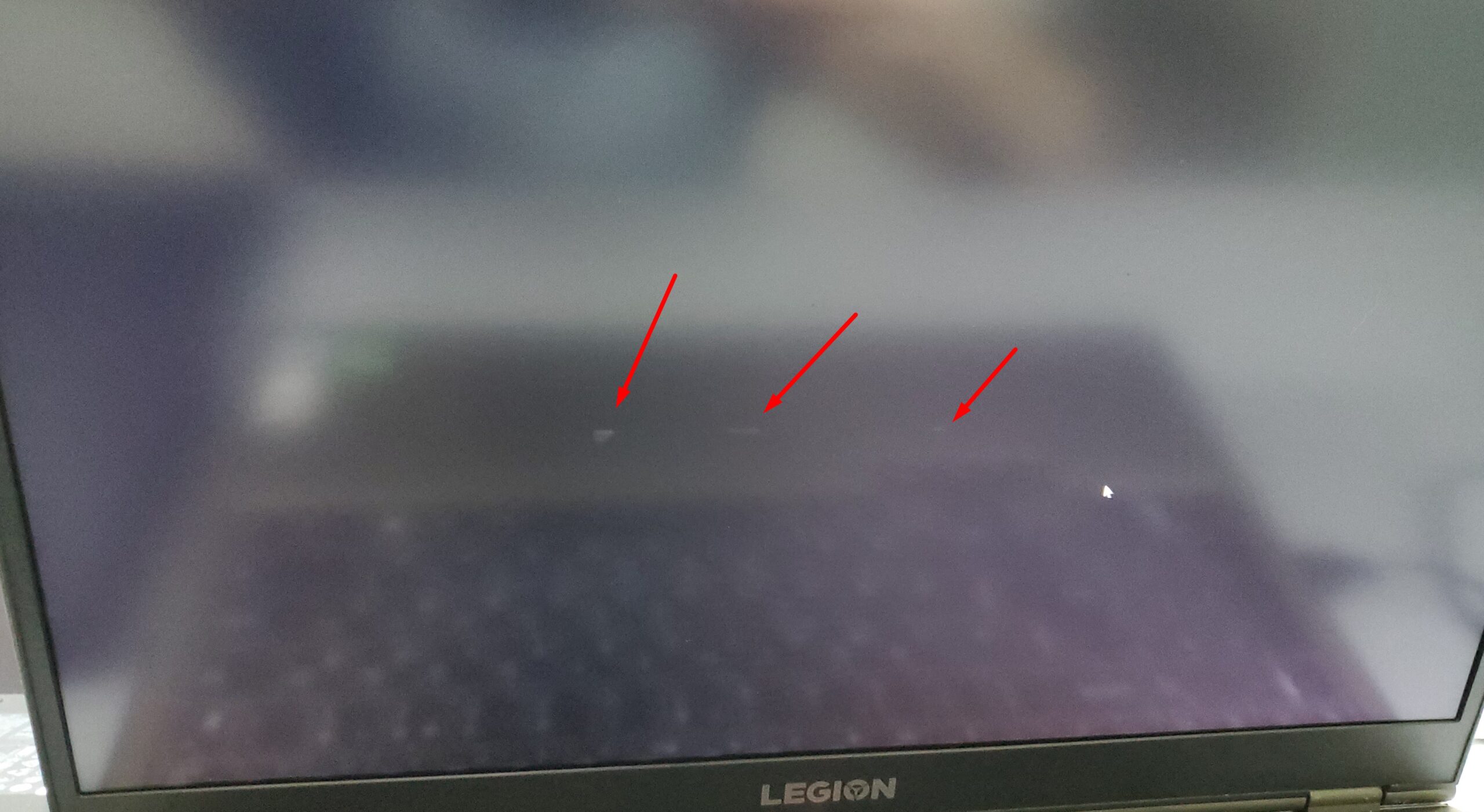 На экране есть небольшая продавленность, которая видна только на черном фоне (см. фото). Во всех остальных режимах незаметна. Данный тип дефектов не имеет тенденций увеличиваться со временем, так как они возникают только вследствие существенного давления на крышку матрицы.