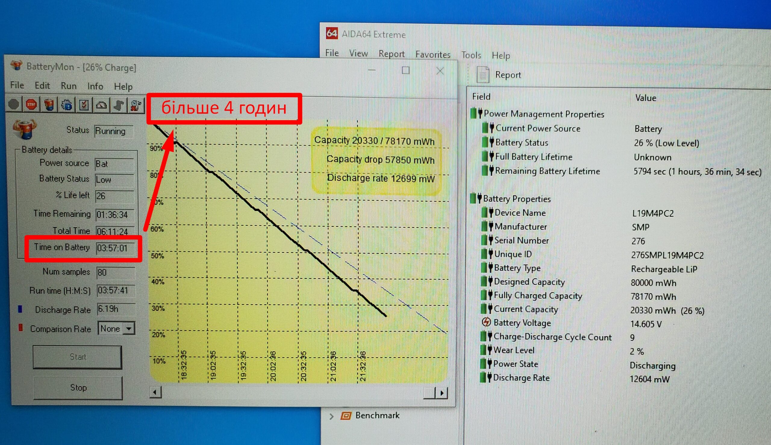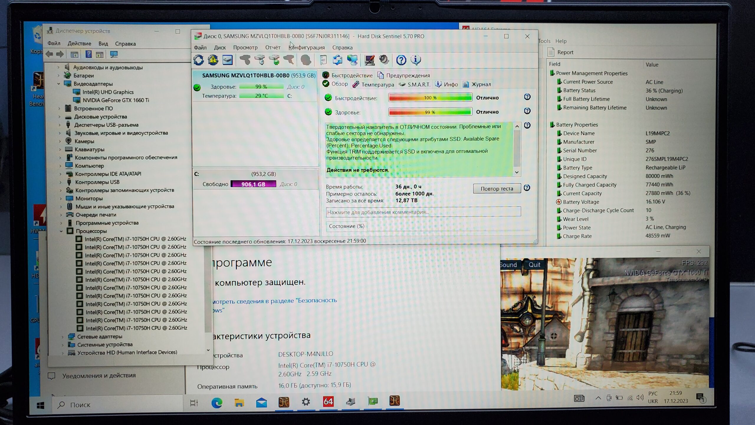 В продаже очень удачная современная модель Legion 5 17IMH05 ноутбука от Lenovo в хорошем состоянии почти без следов использования на мощном полноценном процессоре Intel Core i7-10750H со временем работы от аккумулятора более 4 часов в режиме просмотра фильма (см. скриншот).