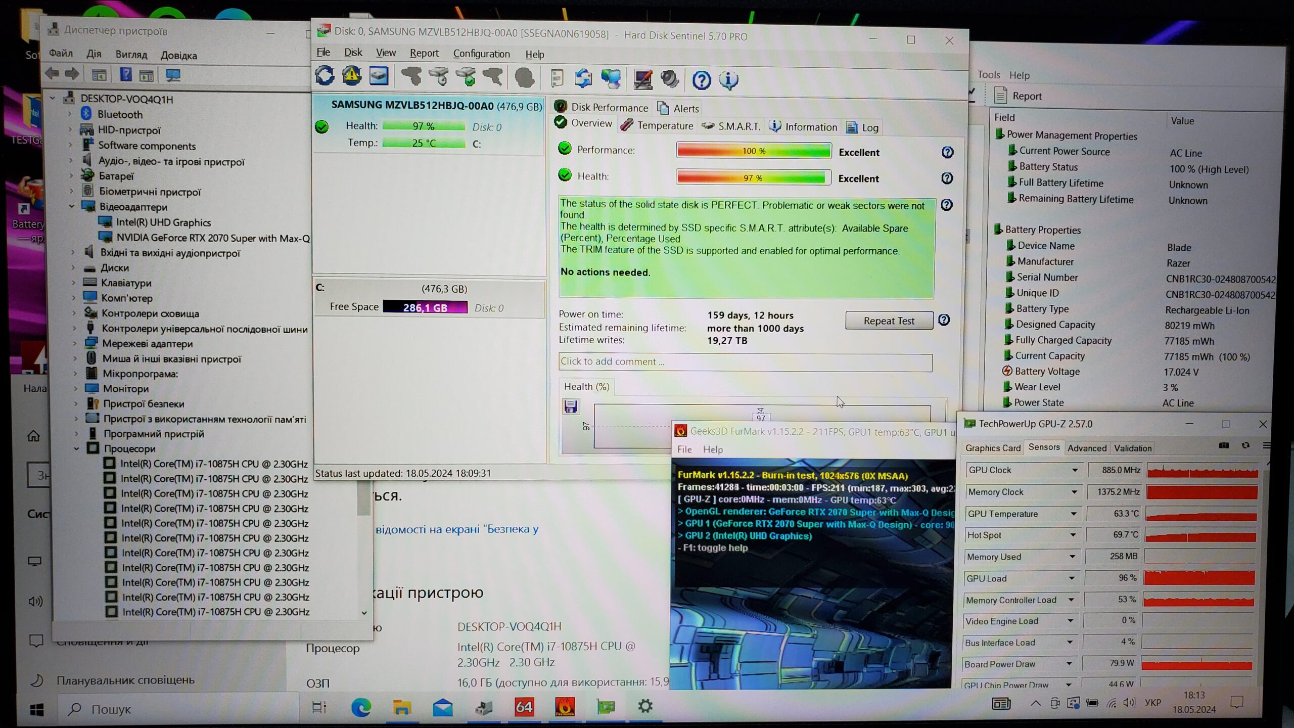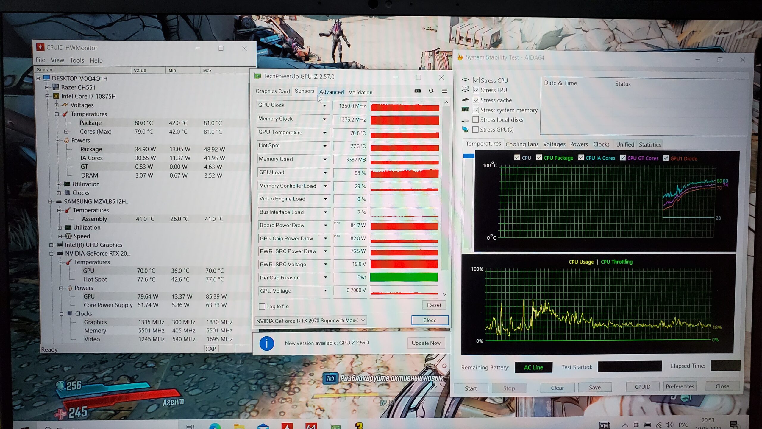 Молниеносно быстрая игровая машина с мощной видеокартой nVidia GeForce RTX 2070 SUPER Max-Q с 256-битной! шиной и 8Гб видеопамяти GDDR6.