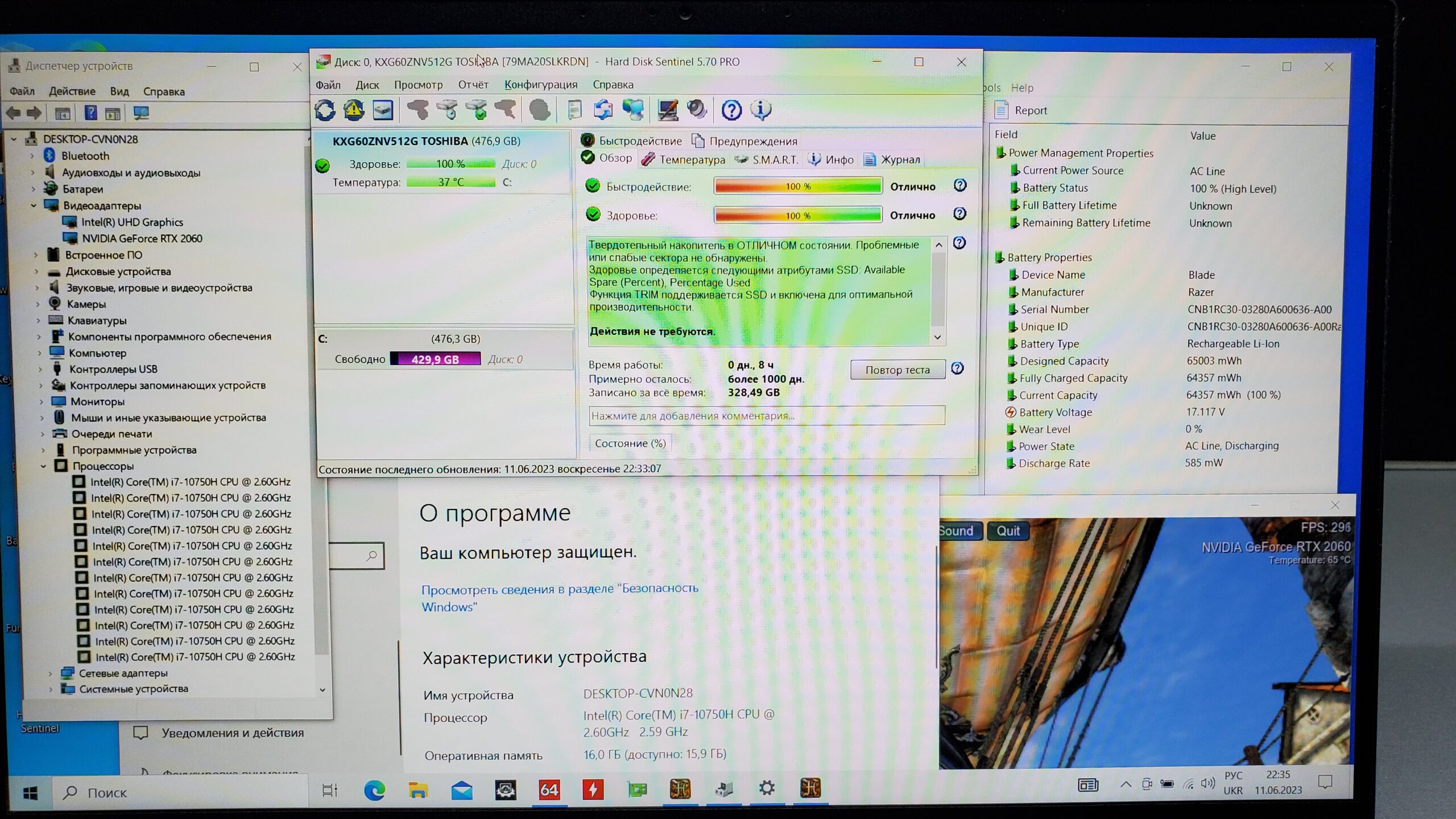 В продаже культовый игровой ноутбук американской торговой марки Razer в отличном состоянии почти без следов использования, на полноценном процессоре Intel Core i7-10750H.