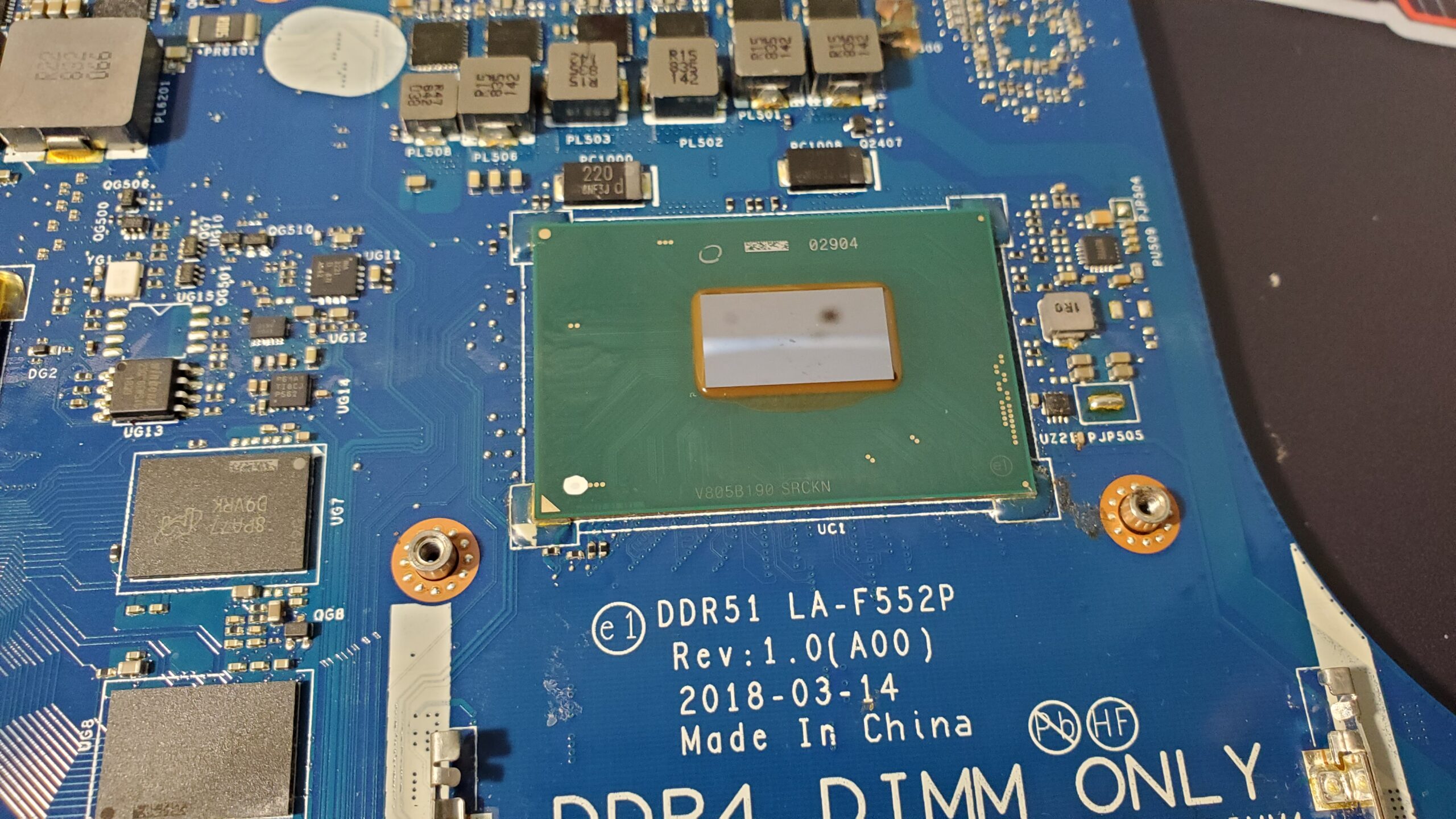 В отдельных случаях, когда «пробивает» источник питания процессора (например, из-за залития) кроме ремонта источника питания требуется еще и замена процессора i9-8950HK (SRCKN).
