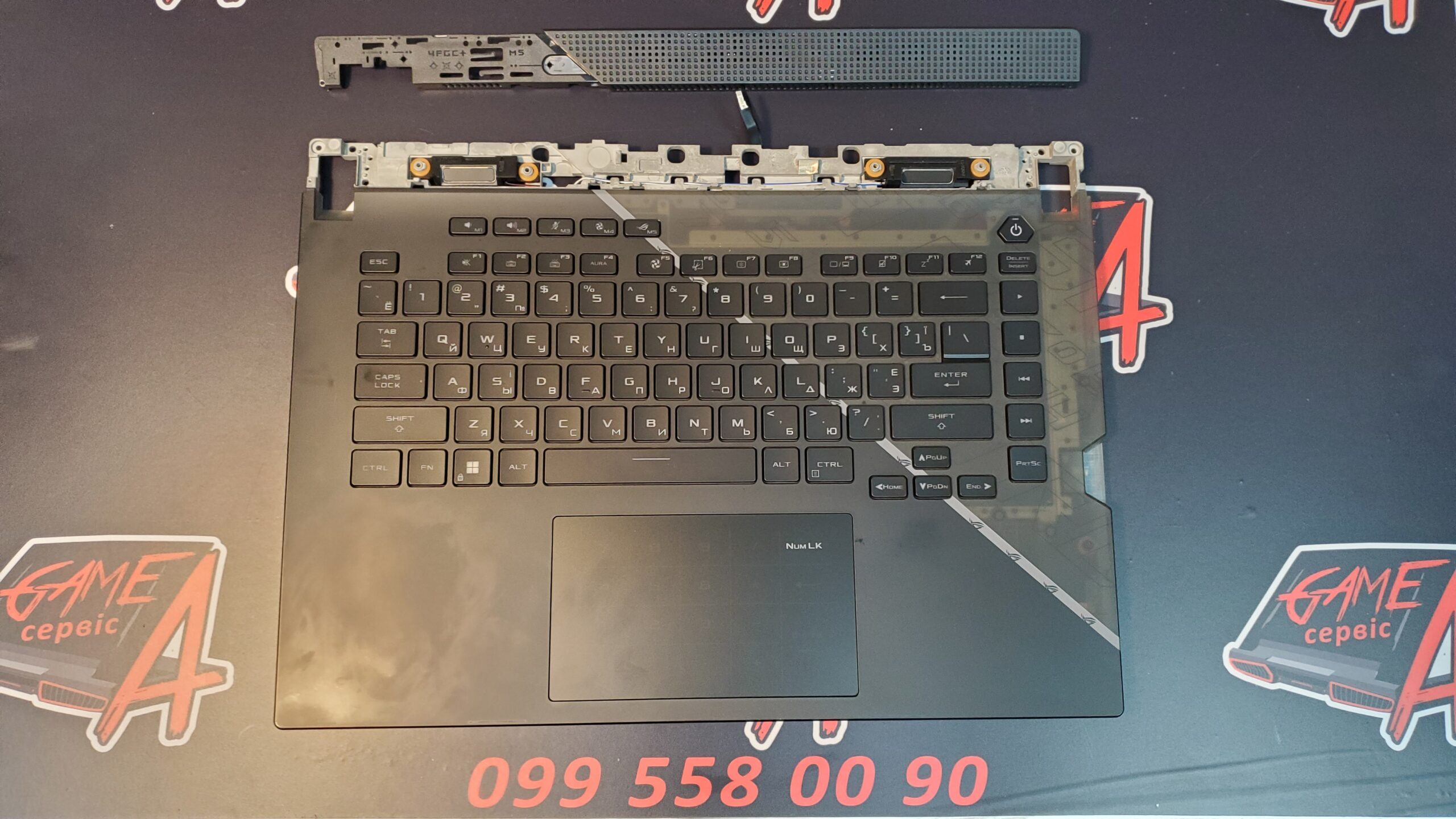 1 и 2 фото) Топкейс в сборе ASUS ROG Strix G533Z, G533R с тачпадом (можно отдельно) и клавиатурой ASUS ROG Strix G533Z, G533R (можно отдельно), динамики (можно отдельно), панель с индикаторами, . Составляющие можно купить отдельно.